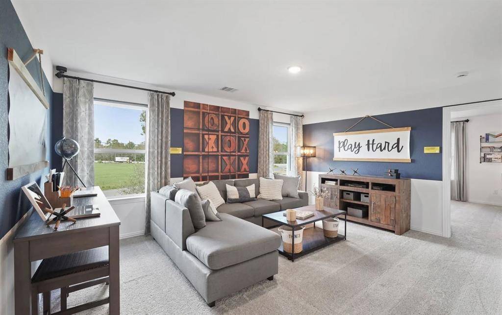 MLS# 21015548 - Built by HistoryMaker Homes - Ready Now! ~ LONE STAR SALES EVENT - Texas-Sized Savings on Move-In Ready Homes - Get 4.99% Fixed Rates, up to $13,000 toward Closing Costs, and a FREE Move-In Package including fridge, washer, and dryer for a limited time only! This stunning single-family residence, situated in the desirable Godley Ranch subdivision, boasts 4 primary bedrooms and 3 full bathrooms. 2 bedrooms downstairs w 2 up separated by the game room. This modern home features an open floorplan, highlighted by decorative lighting, granite counters, and a spacious kitchen island. The kitchen is a chefs dream w gas cooktop & tons of cabinets. The living areas are designed for both relaxation and entertainment, complemented by high-speed internet availability and a walk-in closet in each bedroom. Enjoy outdoor living with a covered patio, private yard, & a well-maintained landscape complete with a sprinkler system. The home offers two garage spaces & is equipped with central gas heating, tankless water heater and cooling systems for year-round comfort. Located within the acclaimed Godley ISD, this property provides access to excellent schools. Low tax rate, Low annual HOA, walking distance to the middle & high school. Community dog park, play ground & covered pavilion for you to enjoy.