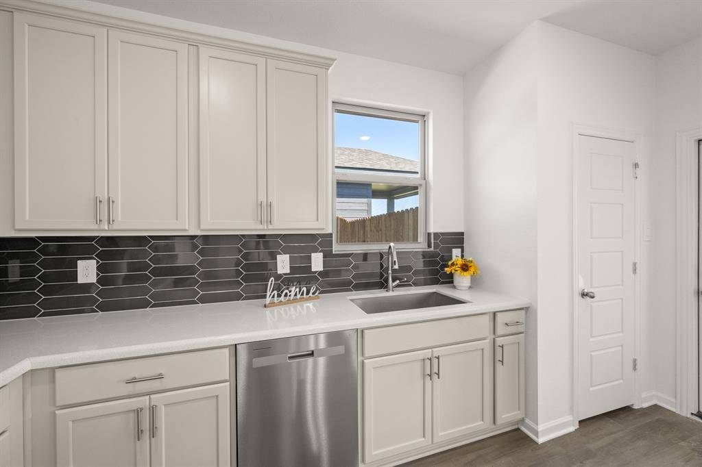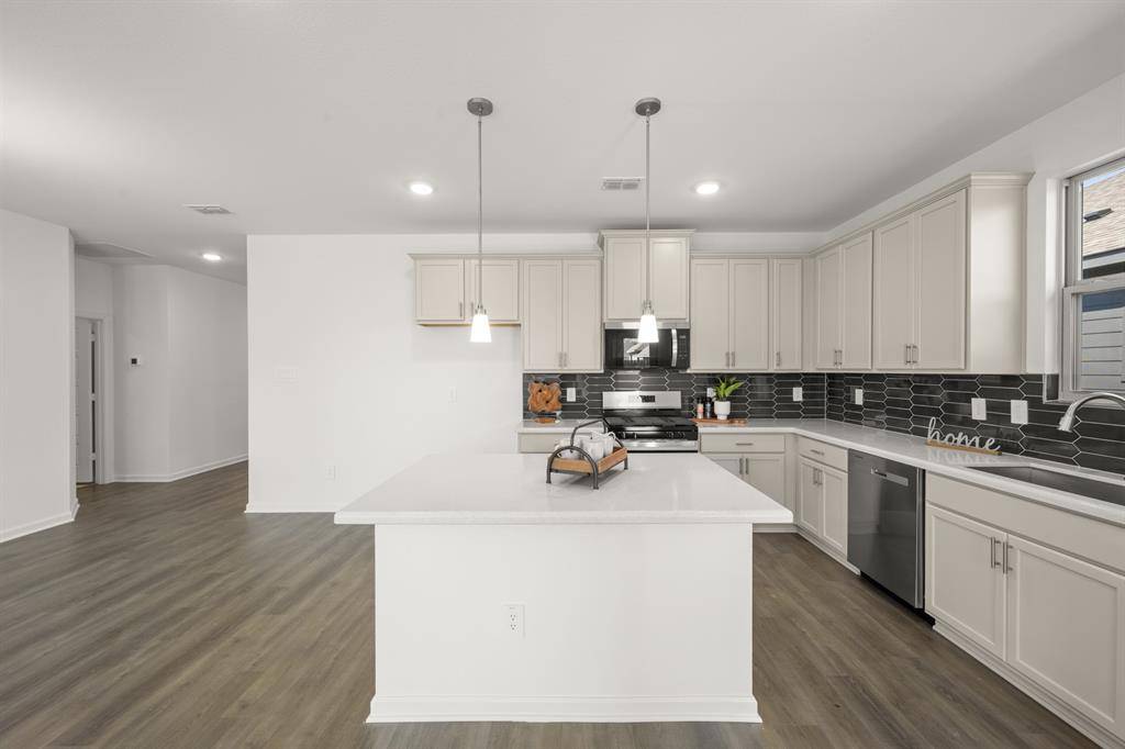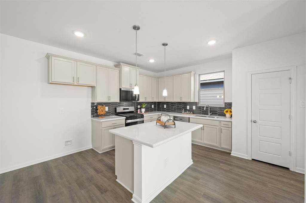 MLS# 21040414 - Built by HistoryMaker Homes - Ready Now! ~ LONE STAR SALES EVENT - Texas-Sized Savings on Move-In Ready Homes - Get 3.99% Fixed Rate plus Closing Costs assistance for a limited time only! Nestled in a serene rural country town, this gorgeous corner single-story, four-bedroom home offers the perfect blend of comfort and tranquility. The home's inviting design features a cozy, open-concept living space, large windows allow natural light to pour in, creating a warm and welcoming atmosphere. The kitchen serves as the heart of the home, boasting modern quartz countertops, a spacious island, gas cooktop, & stainless-steel appliances, making meal prep and entertaining effortless. The bedrooms are thoughtfully laid out, providing privacy and comfort, with the primary suite featuring a large spacious bathroom and generous walk-in closet. Some use the pocket office as a coffee bar or wine bar. The peaceful surroundings are complemented by the soft rustle of leaves and the occasional chirping of birds, providing a sense of escape from the hustle of city life. This home is the perfect retreat for those seeking the charm of rural living without compromising on modern amenities! Low tax rate & low HOA annual fee