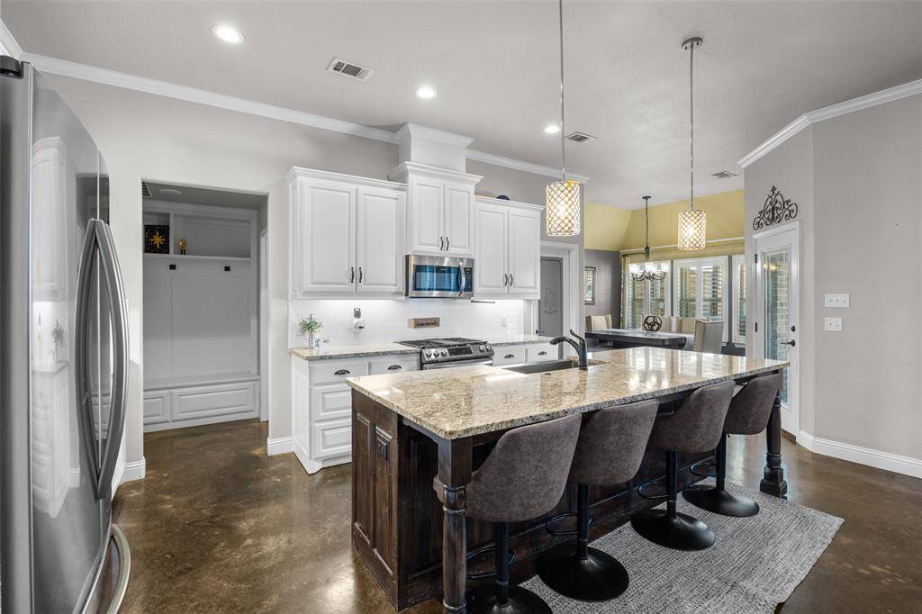 Step outside to your private retreat — a sparkling pool, relaxing hot tub, and covered deck sitting area ideal for relaxing or hosting friends. The high privacy fence and ½-acre lot offer plenty of space to unwind and enjoy those breathtaking Texas sunsets.