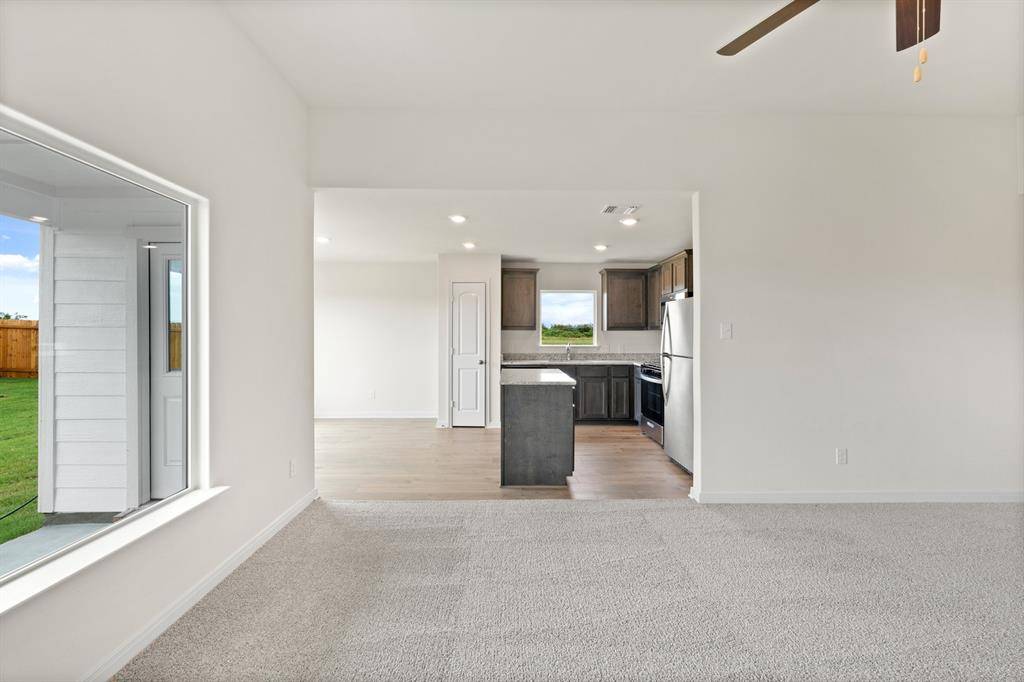 The Blanco plan is a spacious three-bedroom, two-bathroom home with an open-concept layout perfect for comfortable living. The kitchen features wood cabinets, a kitchen island, granite countertops and stainless-steel Whirlpool appliances. Adjacent to the kitchen, the dining room is filled with natural light from large windows, creating an inviting atmosphere for gatherings and memorable family dinners. The family room was designed for relaxing and mingling with family and friends. The private master suite includes a spacious bedroom, private bathroom and a large walk-in closet. The covered back patio and fully fenced backyard offer a secure area for children and pets, and a perfect setting for backyard barbecues with friends and family.