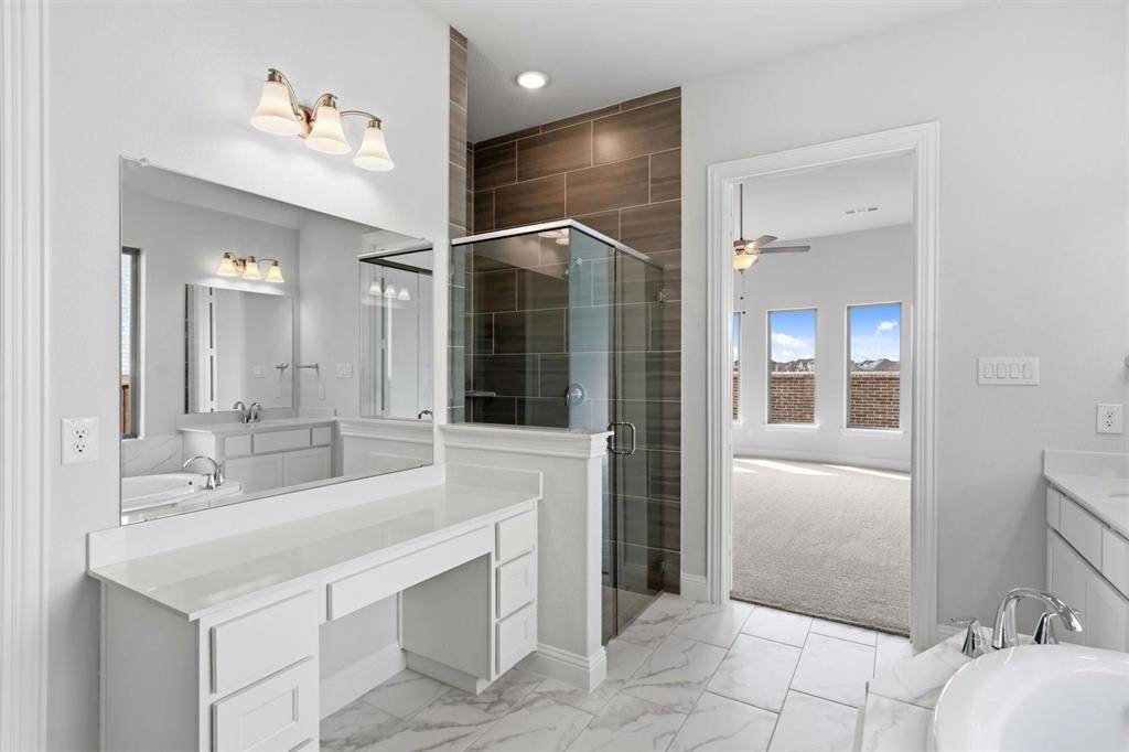 MLS# 21143621 - Built by Coventry Homes - Const. Completed Jan 28 2026 ~ This stunning single story home is an exceptional opportunity you won't want to miss. From the inviting front porch to the soaring entry ceilings, every detail is designed to impress. The expansive great room, featuring a 14-foot ceiling, flows seamlessly into a chef-style kitchen complete with a large island and a convenient prep kitchen—perfect for everyday living and entertaining. Just off the kitchen, a spacious study offers an ideal space for working from home. The luxurious primary suite is a true retreat, showcasing a tall tray ceiling, elegant bowed windows, dual vanities, a soaking garden tub, a walk-in shower, and an oversized walk-in closet. Each secondary bedroom includes its own private bath, offering comfort and privacy for all. Whether you're enjoying game nights in the game room or relaxing on the Texas-sized covered patio, this home is designed for both relaxation and entertainment. Schedule your visit today!