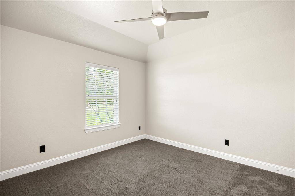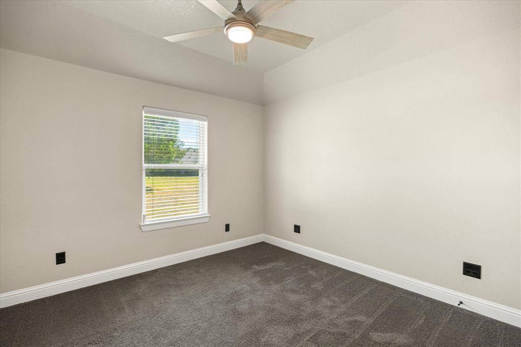 Motivated sellers! Stylish 4 bedroom, 2.5 bath PLUS office home on a .54 acre fenced lot in gated community of DeCordova Ranch. Soaring vaulted ceilings, natural light from the wall of windows and a centrally located stone hearth LP fireplace make this living room the heart of the home and a perfect place to entertain. The kitchen features gas cooking, undermount lighting, spacious island with bookcase end, generous pantry, coffee bar area with tons of storage and stainless steel appliances. Owners suite is a spacious retreat with tray ceiling with up lighting, ceiling fan, views to the backyard and a spectacular ensuite bath with freshly painted double vanities-one with seating area, separate walk in shower, jetted tub and ENORMOUS closet with built in mirror and shelving. Secondary bedroom at front of home in office hallway with bath and 2 other split bedrooms on other side of the home with full bath. Separate laundry room with hanging area or room for 2nd fridge, and cabinets. Footlocker area makes keeping things tidy a breeze. Outside features include a covered patio, pipe fenced backyard and irrigated lawn with plenty of room for a pool!. 2 water heaters new as of Nov 2024 and AC condenser is new this last year. Epoxy floor in garage. Community Center featuring open landscaped park, equipped playground area, picnic tables and outdoor grills, covered pavilion with bathrooms and kitchen.