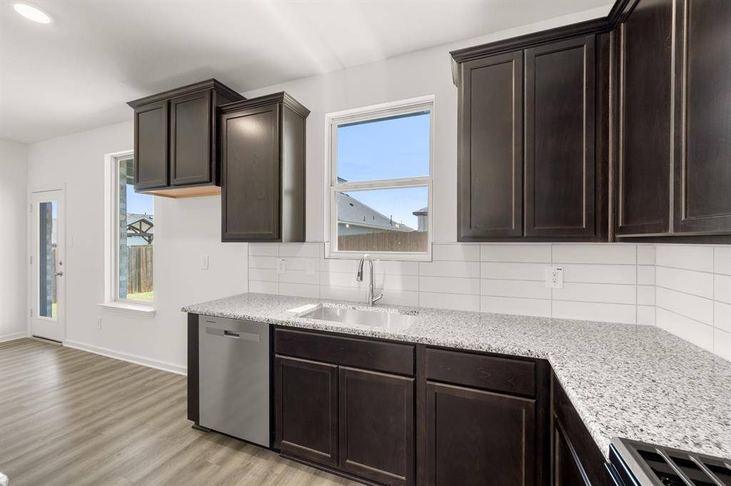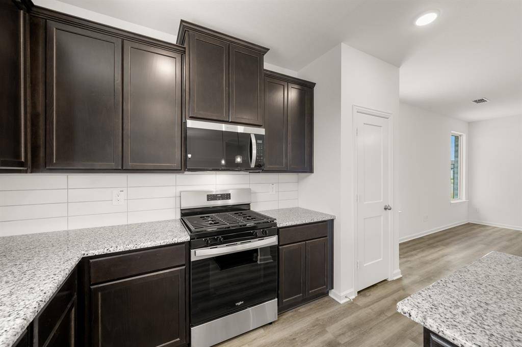 MLS# 21165631 - Built by HistoryMaker Homes - Ready Now! ~ LONE STAR SALES EVENT - Texas-Sized Savings on Move-In Ready Homes - Get 3.99% Fixed Rates, up to $7,500 toward Closing Costs for a limited time only !Ready NOW! This charming open concept 1 story is on a corner, covered back patio & has many upgrades that you will appreciate. Great curb appeal w 100% brick. Luxury Vinyl plank flooring greets you & flows in all the main areas of the home. One of our biggest one stories. Enjoy the natural sunlight in our Emory floorplan which has 4 bedrooms. Never run out of hot water w the tankless water heater & it gives you extra space in the garage. The kitchen is a chef's dream w a gas cooktop, stained cabinets & granite island that's big enough to seat 3-4 people. The master is a nice size along w a great bathroom which has 60” shower, extended vanity + a huge walk-in closet. Large dog park + playground & covered pavilion for you to enjoy. Walking distance to the Middle & High School. Easy access to Chisholm Trail Parkway & other major HWYS. The tax rate & annual HOA are super low!