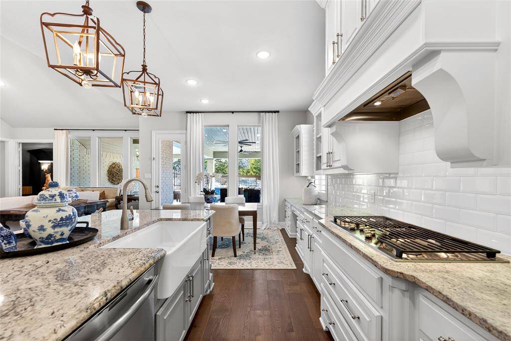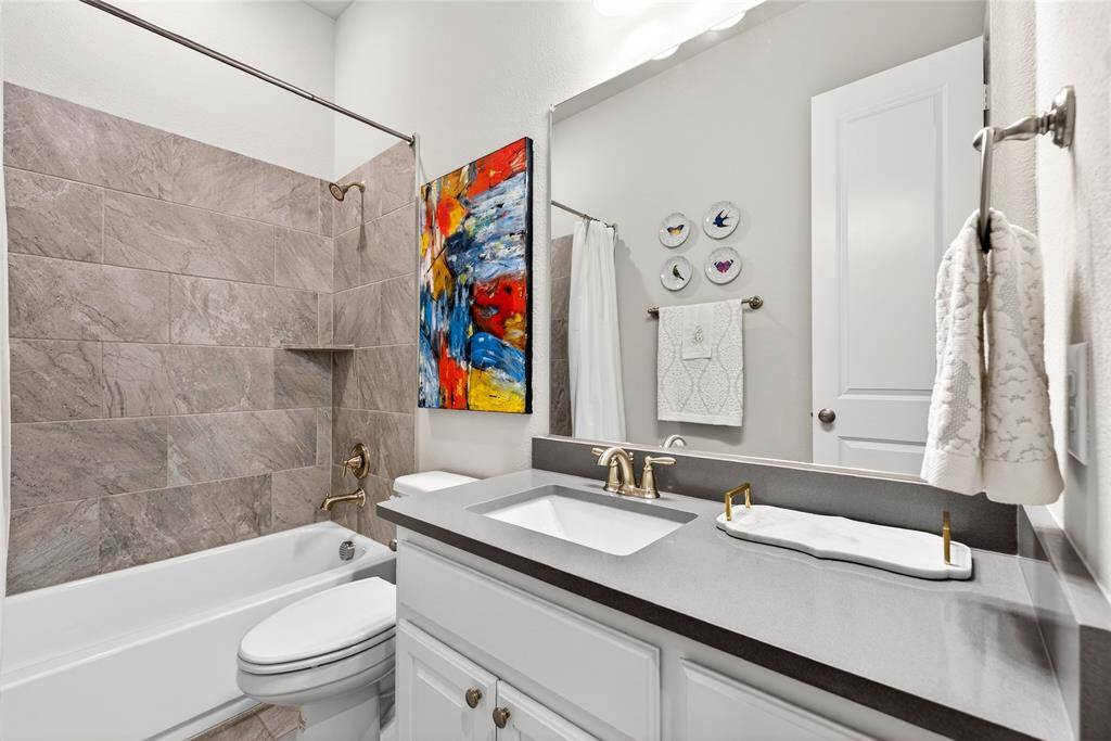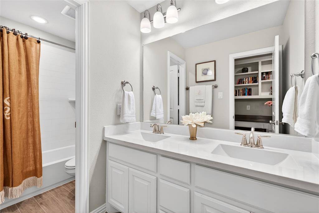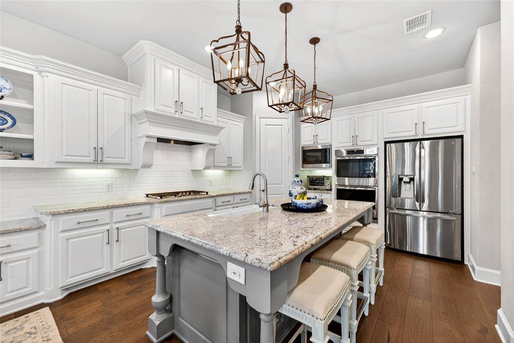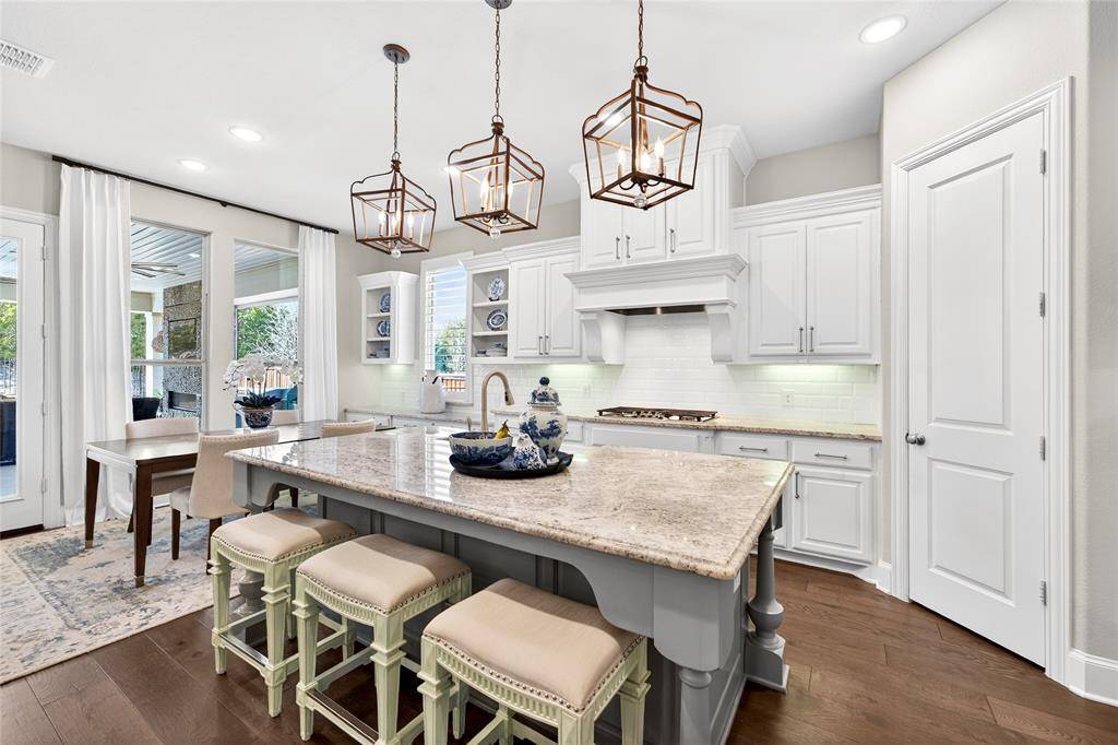 Set on a rare creekside lot in Whitley Place, 3390 Briarcliff Drive offers refined, thoughtfully designed living in the heart of Prosper. The freshly painted brick exterior sets a timeless first impression, while inside, natural light, rich wood flooring, plantation shutters, and curated lighting feels very polished and current. The main level is exceptionally well appointed, featuring a dedicated study, formal dining, downstairs media room, guest bedroom with full bath, and a spacious primary suite. At the center of the home, the kitchen impresses with an oversized island, white cabinetry, double ovens, gas cooktop, and a planning area, flowing seamlessly into the main living space and sunny breakfast nook overlooking the backyard. A butler's pantry and mud bench add everyday convenience. The primary suite is privately tucked away and designed as a true retreat, complete with a sitting area, spa-like bath with dual vanities and soaking tub, and a custom closet with direct access to the utility room. Upstairs, generously sized secondary bedrooms are complemented by a large game room offering flexible space for entertaining or family activities. Outdoors, the setting is truly exceptional. An extended covered patio with full outdoor kitchen, fireplace, and TV overlooks a resort-style pool and spa, all backing to a limestone creek and greenbelt that will always remain greenspace. Motorized drop-down solar shades offer privacy and year-round indoor-outdoor living. The result is a serene, private environment framed by mature trees and peaceful views, an outdoor living experience rarely found in Prosper. Three car garage includes built-in cabinetry and overhead storage, both available to convey Highland Homes residence pairs elegant interiors with an extraordinary outdoor lifestyle in one of Prosper's most sought-after communities. No MUD or PID. Zoned to highly acclaimed Prosper ISD and Walnut Grove High School.