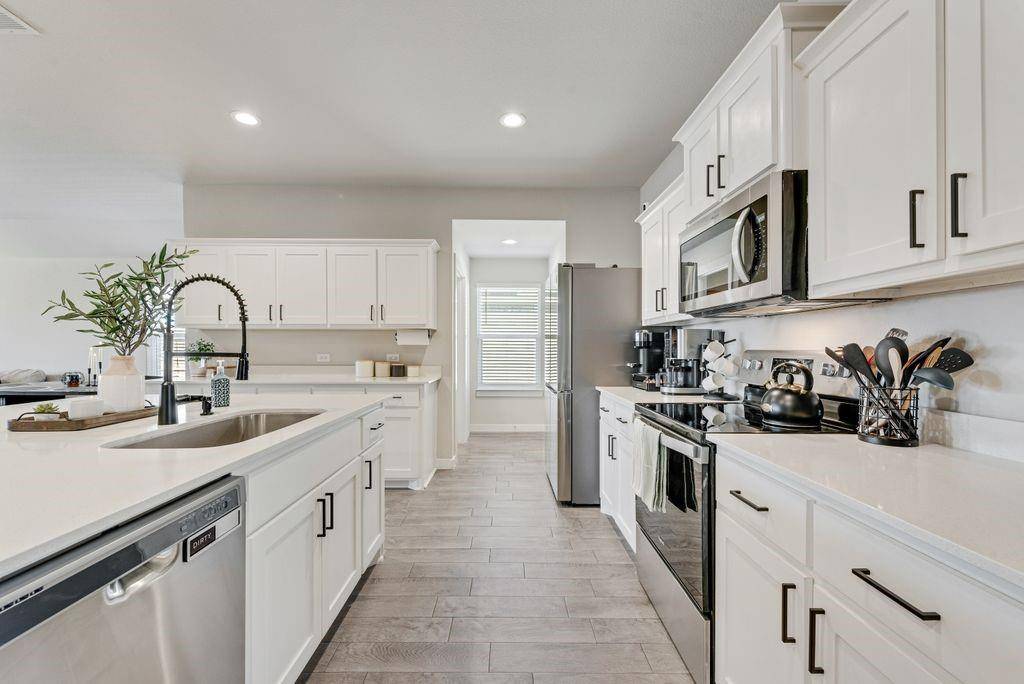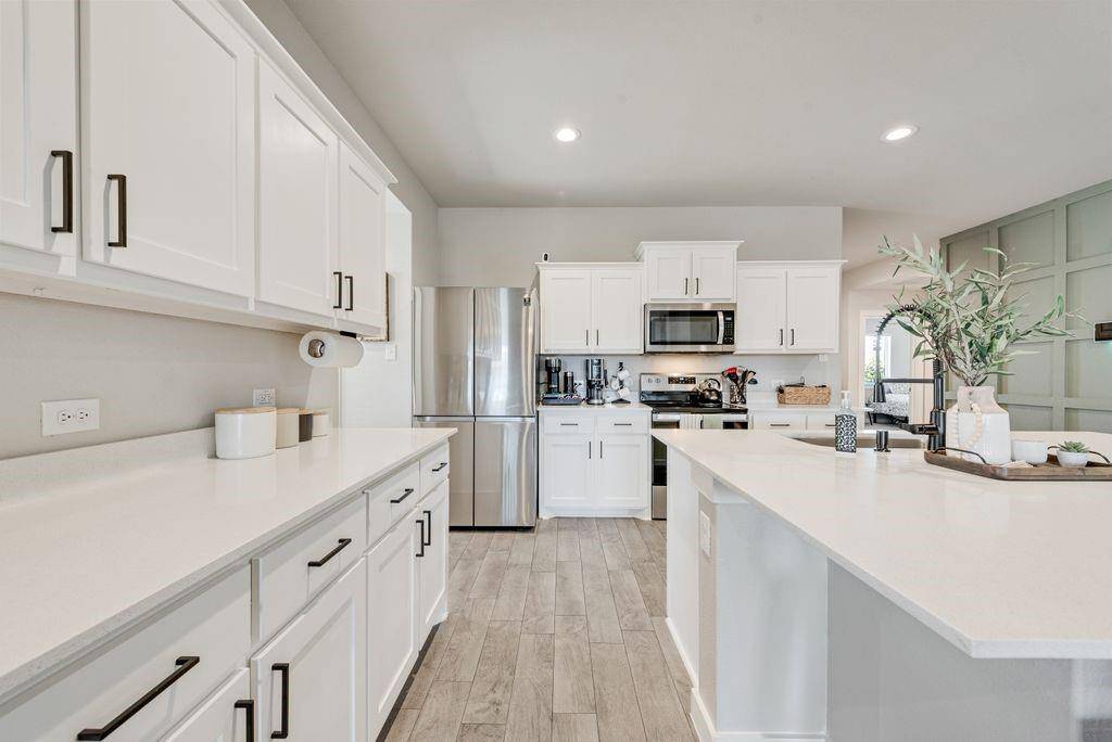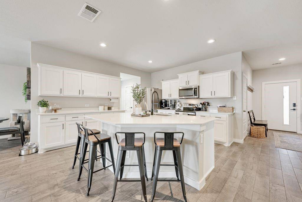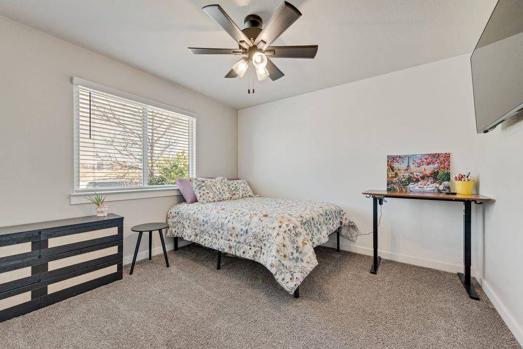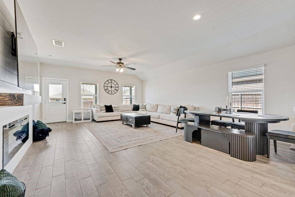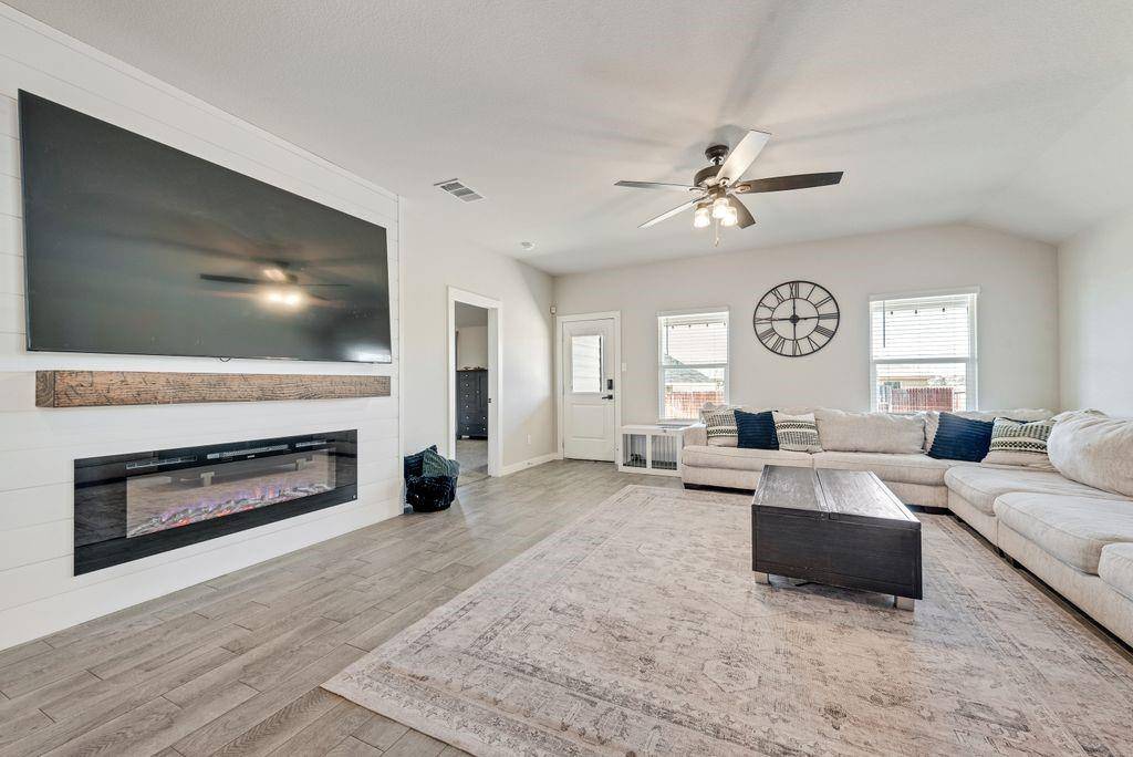 This home stands out with its modern exterior design and thoughtfully upgraded interior. Step inside to a bright, clean aesthetic featuring crisp white walls, white cabinetry, and elegant white quartz countertops throughout. The oversized kitchen island anchors the heart of the home, providing the perfect space for gathering, dining, or enjoying a view into the open living area — ideal for entertaining or simply relaxing while watching TV. The living room is centered around a custom electric fireplace feature wall that creates a warm and inviting focal point. The current owners have invested significant time and care into enhancing the home beyond builder-grade finishes, adding thoughtful details that set it apart from others in the neighborhood. One secondary bedroom has been creatively transformed into a charming playroom complete with a princess castle and a hidden Murphy bed, allowing the space to easily convert back to a guest room when needed. The flexible layout makes the home both functional and fun. The primary suite offers a spacious retreat with a large bedroom and a private bath featuring a separate shower and ample room to unwind. Throughout the home, you'll feel the pride of ownership and the care that has gone into every improvement. The backyard is larger than many others in the neighborhood due to its position on the edge of the cul-de-sac, and has an extended patio providing additional room for play, entertaining, workouts, or simply enjoying the outdoors. Smart upgrades including app controlled garage door and irrigation system. Smart locks and entry lights that can integrate with any alarm system. Solar panels are installed on the home and are negotiable, with a preference for assumption. Combined with its modern finishes, upgraded features, convenient location, and warm, welcoming feel, this home is a standout opportunity in Alvarado.