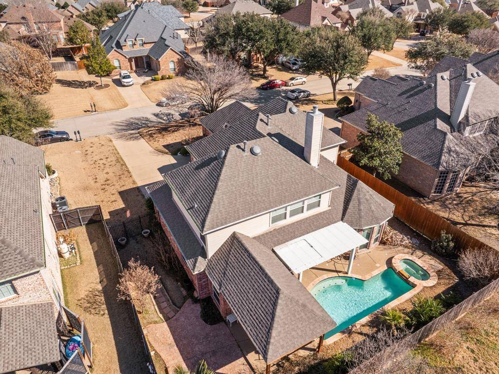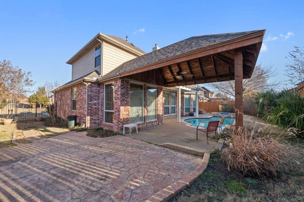 Tucked inside the established streets of Walnut Creek North, this Mansfield home delivers space, flexibility, and resort-style living in one polished package. The two-story layout offers four well-appointed bedrooms, three and a half baths, a dedicated game room, and a rare three-car garage—ideal for growing households or anyone who wants room to spread out. At the heart of the home, the kitchen anchors everyday living with a generous island, abundant prep space, and an easy connection to the surrounding living areas—perfect for hosting, holidays, or casual nights in. The main living spaces flow effortlessly, creating an open feel that still offers definition and comfort. The primary suite feels like its own private escape, featuring expansive windows that frame tranquil views of the backyard oasis. Step outside to enjoy a true standout feature: a sparkling pool and spa paired with an extended covered patio, setting the stage for summer gatherings, weekend cookouts, or quiet evenings under the Texas sky. Thoughtful upgrades add long-term value and peace of mind, including a new roof (2024), dual HVAC systems replaced in 2023, and two new water heaters (2023). Rich wood flooring enhances the living room, dining area, and primary bedroom, adding warmth and timeless appeal. Located within Mansfield ISD and zoned for Boren Elementary, Wester Middle, and Mansfield High, this home offers access to top-tier schools along with nearby shopping, dining, and everyday conveniences—all while maintaining a calm, neighborhood feel.