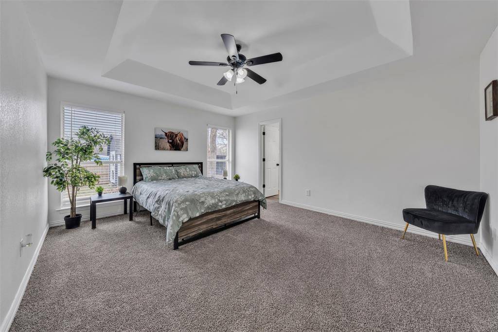 The private primary suite is generously sized and offers a relaxing retreat with a tray ceiling and en-suite bath. Secondary bedrooms are well-appointed and versatile, perfect for family, guests, or a home office. Updated bathrooms showcase modern fixtures, clean lines, and timeless finishes.