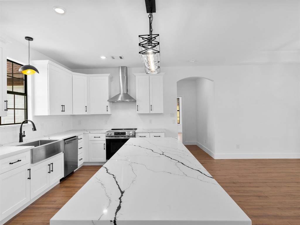 The kitchen is featuring stunning white quartz countertops, a spacious pantry for ample storage, stainless steel appliances including an electric range, microwave, and dishwasher, and a large stainless steel sink that makes meal prep and cleanup a breeze. The open design allows the kitchen to overlook the living room, keeping everyone connected.