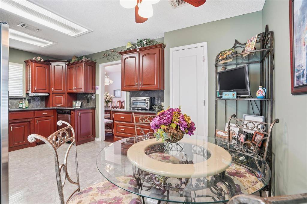 Welcome to your dream home in Timber Ridge—a stunning residence that perfectly blends comfort, style, and outdoor enjoyment! This inviting property features gorgeous curb appeal, nestled next to a scenic walking path with no immediate neighbors on one side or behind, ensuring rare peace and privacy. Step through the front door into a bright, open-concept living space bathed in natural light. The living room's soaring vaulted ceilings create an airy, spacious atmosphere, while the elegant wood-burning fireplace invites you to unwind during cozy winter evenings. Entertain guests in the formal dining area, or enjoy casual meals in the charming eat-in breakfast nook. The kitchen is a cook's delight, boasting ample cabinetry, built-in microwave, generous counter space & large walk-in pantry—perfect for storing all your culinary essentials. Whether you're preparing everyday meals or hosting festive gatherings, this kitchen is designed for both functionality and style. Retreat to the primary suite, where vaulted ceilings enhance the sense of space and tranquility. Pamper yourself in the updated en-suite bathroom featuring modern shower tile and thoughtful finishes that elevate your daily routine. Two additional bedrooms offer flexible space for family, guests, or a home office, while the light-filled hall bathroom adds extra convenience. Step outside to your own private oasis: a sparkling in-ground pool surrounded by an expansive, beautifully maintained yard. Whether you're hosting lively summer pool parties, relaxing with a book in the sun, or dining al fresco, the backyard is a true sanctuary for both entertaining and unwinding. Discover all the comforts and amenities you desire in this exceptional Timber Ridge home—schedule your tour today and experience the best in modern living!