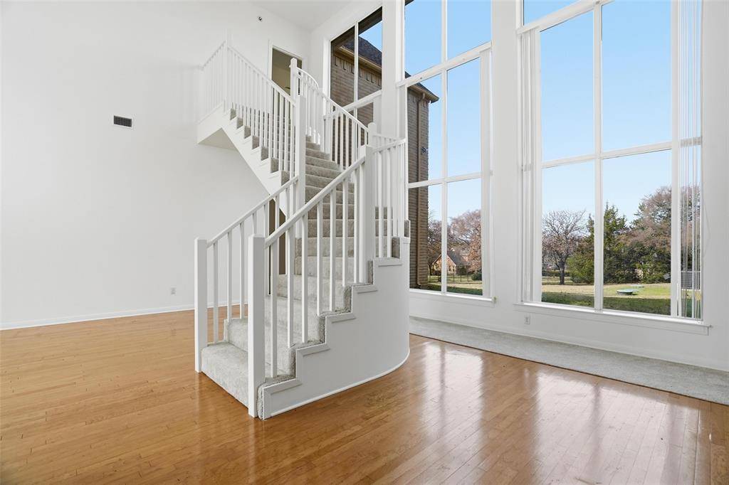 Welcome to your new home in prestigious Bent Oaks, where timeless elegance meets modern comfort on a sprawling one-acre lot with stately circular drive. Step through the front door to discover a formal living room bathed in natural sunlight from floor-to-ceiling windows, complemented by rich wood floors that add a sense of luxury & refinement. The formal dining room, perfectly situated for hosting memorable dinners, features graceful transitions into the gourmet kitchen and the inviting main living areas. The sunken living room creates an intimate, cozy atmosphere, anchored by a classic wood-burning fireplace—ideal for gathering around on chilly evenings. Oversized windows provide panoramic views of the lush grounds & flood the space with serene, natural light throughout the day. The chef's kitchen is a true centerpiece, boasting an expansive island, abundant custom cabinetry, a spacious eat-in nook, and open sight lines for effortless entertaining. Whether preparing daily meals or hosting lively gatherings, this kitchen is designed for both function and style. Downstairs, thoughtful layout continues with full bath & versatile room that can serve as home office, guest suite, or creative studio, along with an additional full bath & a flexible bedroom area perfect for multigenerational living or accommodating guests. Ascend the staircase to the impressive primary suite—a private sanctuary featuring a spa-inspired bathroom with a luxurious garden tub, separate glass-enclosed shower, dual vanities, two oversized walk-in closets, sophisticated tilework, and soaring windows that invite the outdoors in. Step outside to envision your own outdoor paradise: the expansive backyard offers limitless possibilities for a custom pool, outdoor kitchen, fire pit, or peaceful garden retreat. This is a rare opportunity to own a residence that blends elegance, functionality, & perfect setting for making lasting memories.