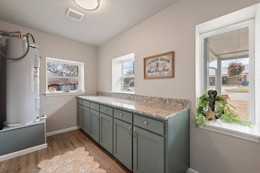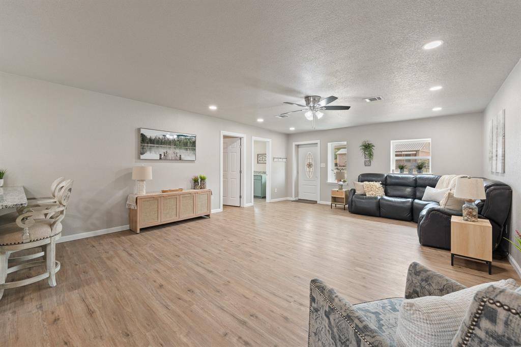 Located in the highly sought-after Sky Harbour community, this one-of-a-kind property holds a special place as the very first home built in the neighborhood. Offering water access along with an original water well, storm shelter, and cistern, this property blends character, functionality, and peace of mind. Completely remodeled from top to bottom, the home showcases all-new luxury vinyl plank flooring and tile, brand-new windows, updated light fixtures, stylish vanities, and most impressive of all, foam insulation added to the exterior walls and roof decking for exceptional energy efficiency. Major updates include a repaired foundation, brand-new HVAC system, relatively new water heater, and the slab side of the home that is already graded for a future two-story addition if desired. Step inside to a stunning open-concept 4-bedroom, 3-bath home with a dedicated office, where the kitchen steals the show with custom cabinetry, granite countertops, and all-new appliances. The thoughtfully designed split-bedroom layout includes a second master suite ideal for in-laws or teenagers, while a spacious hallway leads to a flex room, two additional bedrooms, a full bath, and the serene primary retreat featuring beautiful natural light and a fully updated ensuite with granite counters and a tiled walk-in shower. Even the oversized laundry room has been elevated with granite countertops and custom cabinetry. This move-in-ready home is waiting for new owners to enjoy peaceful living in Sky Harbour and everything Granbury has to offer.