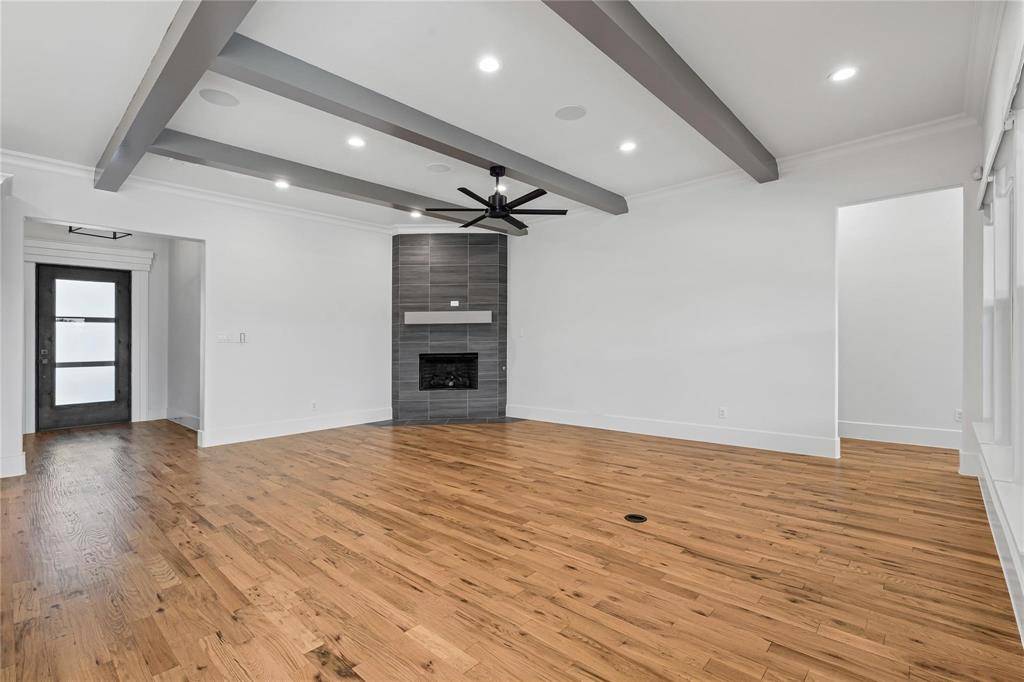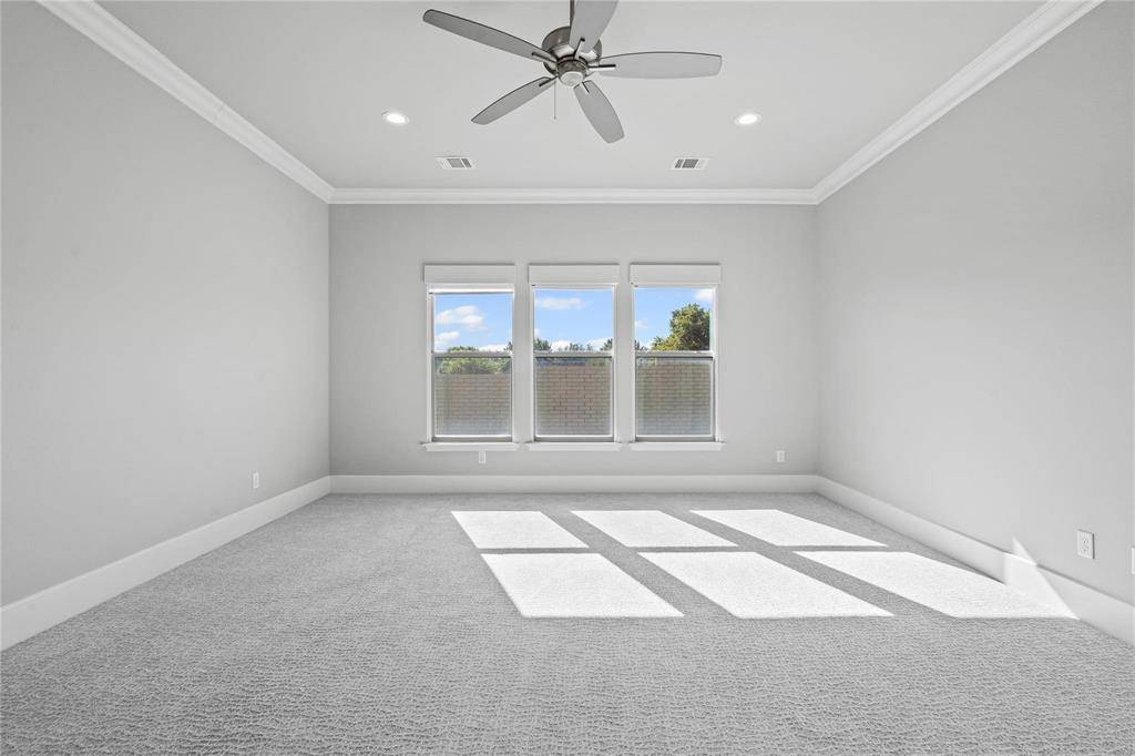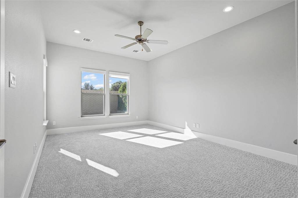 This home has a spacious floorplan that opens up to the dining room, living room, and kitchen. This open concept makes it a great entertaining space. The home features natural wood floors, granite, surround sound speakers in living room and dining room, and quartz countertops with new freshly hand painted cabinets in kitchen and bathrooms. The master features a walk-in closet, spacious two-person shower, jetted tub, and a his and her vanity. The master is an oversized bedroom made for a seated area. This home comes with a beautiful flex room that sits right across from the master which has top to bottom mirrors on each side. This property comes with a gas fireplace in the living, built in KitchenAid appliances in the kitchen, and quartz countertops. The home also has a spacious office area located left of the entry way. All rooms come with new carpet, and the home comes with new light fixture on the interior and two new light fixtures in the front. The backyard of the property comes with an oversized patio, ceiling fan, surround sound speaker system, and a fireplace.