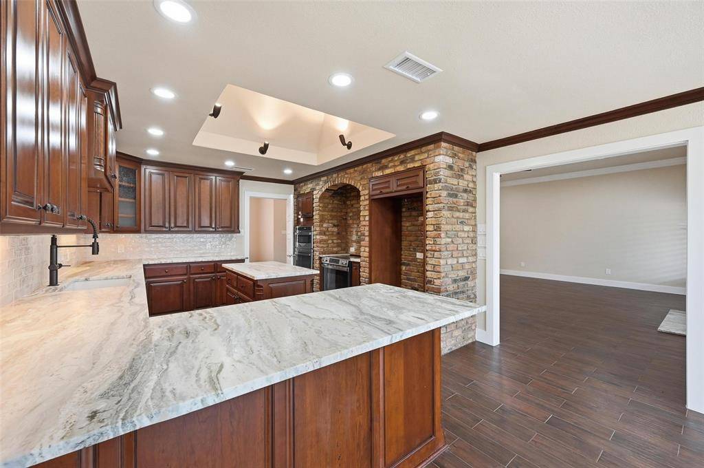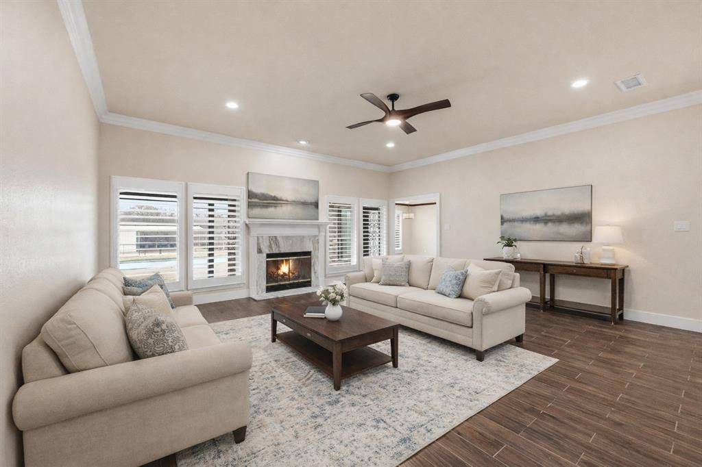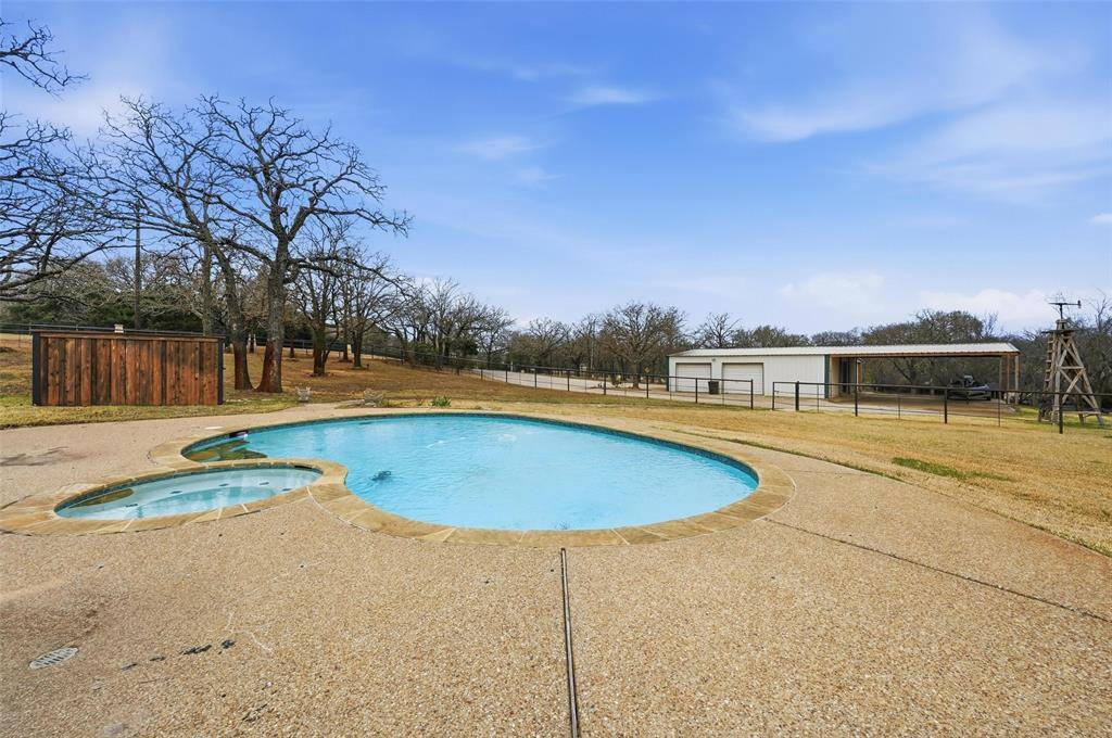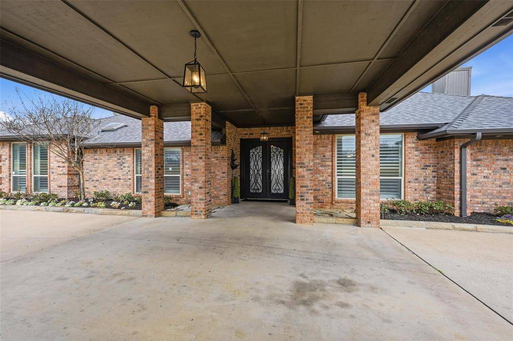 Welcome to a one-of-a-kind executive estate, gracefully sited on three acres, free from city taxes. As you approach, the gated circular drive hints at the grandeur within, while the porte cochere offers a dramatic and convenient entrance for guests and residents alike.Step inside to discover a spacious, light-filled foyer that opens into formal living and dining spaces, ideal for hosting elegant gatherings or intimate family dinners. Oversized windows throughout the living area frame picturesque views of the backyard, bathing the rooms in natural light and creating a seamless connection to the outdoors. A cozy wood-burning fireplace anchors the living room, providing warmth and ambiance on cool evenings.The gourmet kitchen is a chefs delight, boasting rustic, Tuscan-inspired brick accents that surround the cooking area. The kitchen features a generous island, marble countertops, stainless steel appliances,breakfast bar for casual dining, & sunlit eating nook.Primary suite is a true sanctuary,featuring double-sided fireplace that flickers between the bedroom & spa-inspired ensuite bath. Unwind in the deep soaking tub or refresh in the oversized glass-enclosed shower. Dual vanities & ample storage complete this luxurious retreat.Three additional bedrooms ensure space for family and guests, while Jack-and-Jill bath provides accessibility & privacy. The expansive family room is designed for memorable moments, omplete with a built-in wet bar, abundant windows, & direct access to the outdoor living spaces. Step out to the sparkling play pool and shaded patio—perfect for summer parties or relaxing afternoons.Equestrians & hobbyists will appreciate the separate barn, thoughtfully equipped with seven roll-up bay doors for access and two stalls for horses. The attached carport offers ample room for boats, recreational vehicles, or equipment. The estate is cross-fenced with durable pipe fencing. Experience refined country living at its best—this showpiece estate is a must-see!