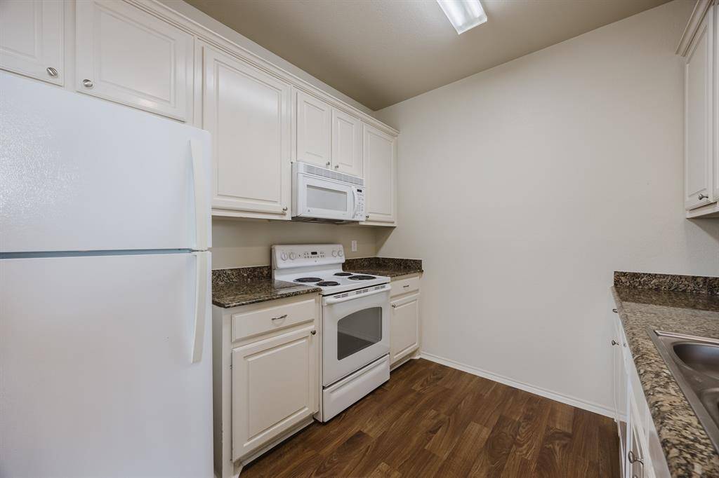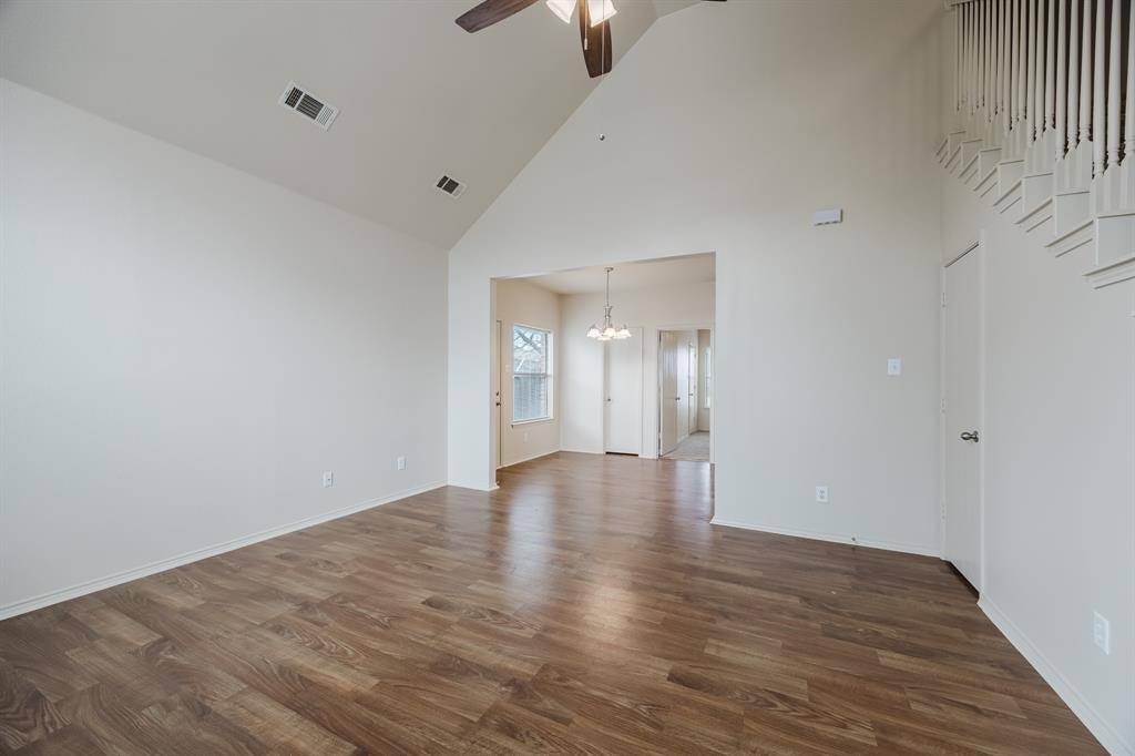 Open floor plan with high ceilings, granite countertops, plenty of cabinet space, and all appliances included.