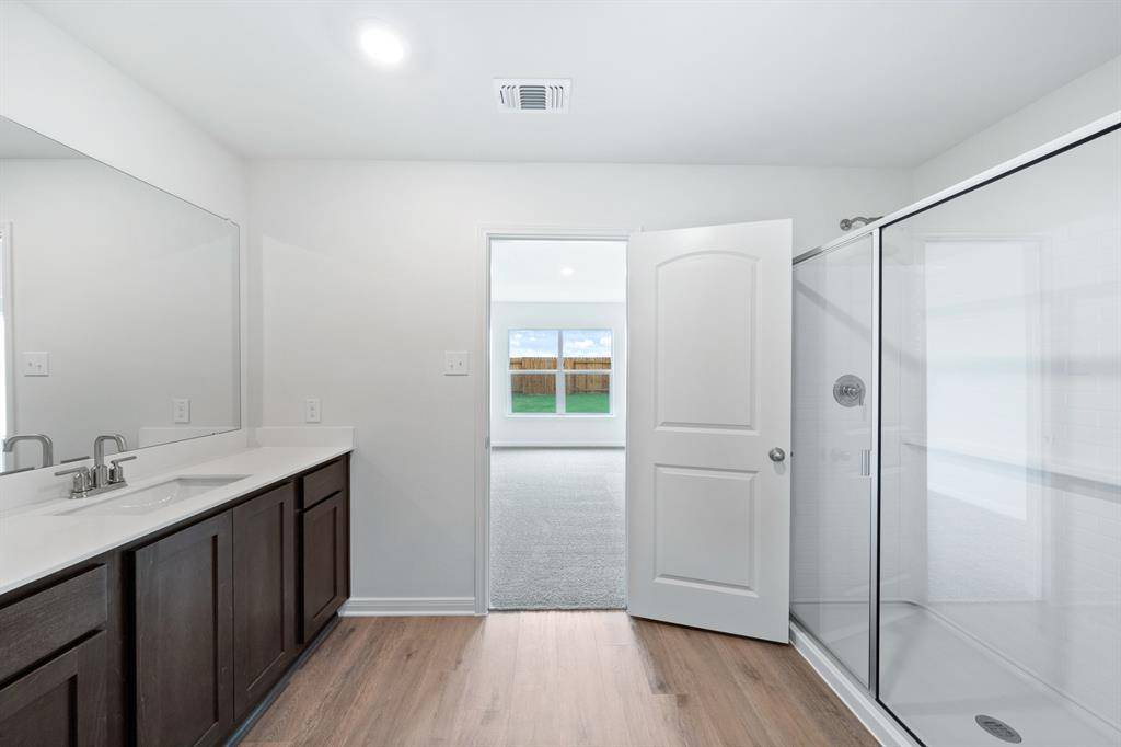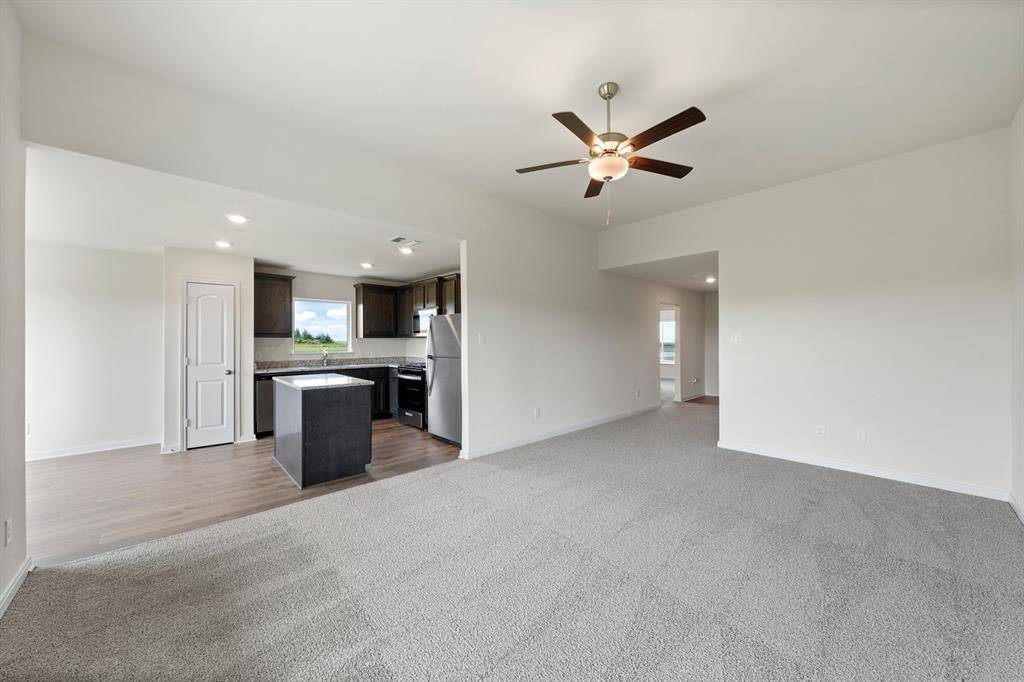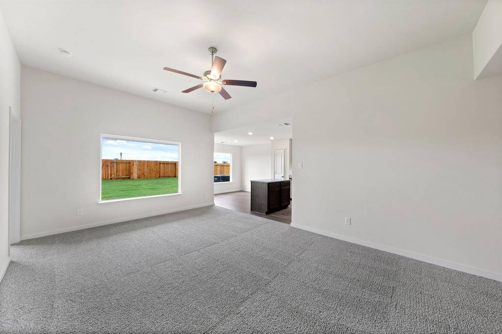 The Blanco plan is a spacious three-bedroom, two-bathroom home with an open-concept layout perfect for comfortable living. The kitchen features wood cabinets, a kitchen island, granite countertops and stainless-steel Whirlpool appliances. Adjacent to the kitchen, the dining room is filled with natural light from large windows, creating an inviting atmosphere for gatherings and memorable family dinners. The family room was designed for relaxing and mingling with family and friends. The private master suite includes a spacious bedroom, private bathroom and a large walk-in closet. The covered back patio and fully fenced backyard offer a secure area for children and pets, and a perfect setting for backyard barbecues with friends and family.