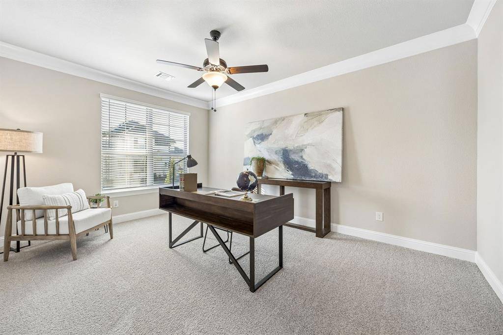 MLS# 21203035 - Built by Chesmar Homes - Ready Now! ~ Move-in Ready Home! The Carrington is a spacious single-story floor plan designed for flexible living and modern comfort. This open-concept home features a large family room with an electric fireplace that flows into a gourmet kitchen with a center island, walk-in pantry, and adjacent dining area perfect for entertaining. The private primary suite offers a relaxing retreat with a spa-style bath and walk-in closet. Secondary bedrooms, a game room, and a dedicated study provide versatile space for work, play, or guests. Enjoy covered outdoor living with a generously sized covered patio. With a two-car garage, mud bench, utility room, and ample storage, the Carrington combines smart design, flexibility, and everyday functionality in a beautifully designed one-story home.