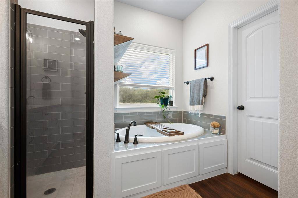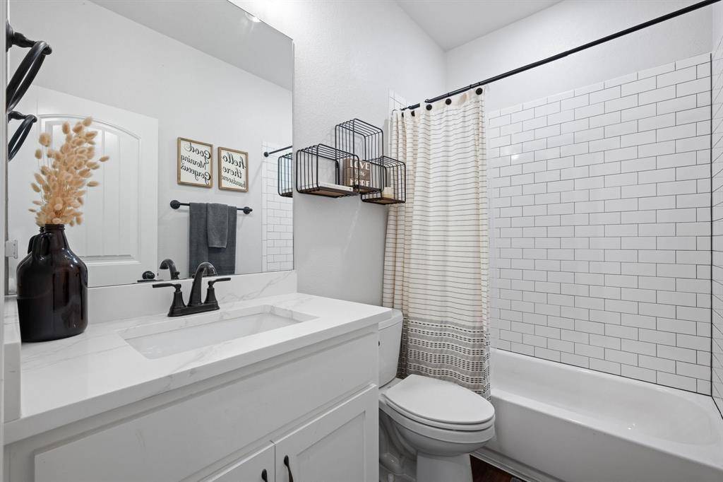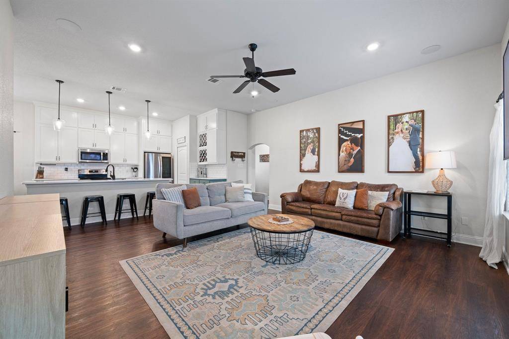 This charming Bransom-built home welcomes you from the moment you arrive, offering curb appeal and a warm, inviting atmosphere. Featuring 3 bedrooms and 2 bathrooms, the thoughtfully designed split-bedroom floor plan provides both comfort and privacy. The main living areas showcase an open-concept layout filled with natural light, creating a bright and spacious feel that's perfect for everyday living and entertaining. Luxury vinyl plank flooring and tile run throughout the home, adding both durability and style. The kitchen is a standout with beautiful quartz countertops, stainless steel appliances, a dedicated coffee bar, walk-in pantry, and an abundance of cabinetry and storage space. The laundry room is conveniently located just off the kitchen for added functionality. The private primary suite is tucked away from the secondary bedrooms and features an en-suite bath with quartz countertops, dual sinks, a soaking tub, separate shower, and a large walk-in closet complete with a built-in vanity. Two additional bedrooms share a well-appointed full bath. Step outside to enjoy the covered patio overlooking a peaceful greenbelt, creating the perfect setting for grilling, relaxing evenings, or entertaining family and friends. The backyard offers a private, country-like feel where you can relax and unwind, while the home itself is nestled in a welcoming neighborhood just minutes from everything you need in Burleson. Enjoy the best of both worlds—peaceful privacy with the convenience of neighborhood living.