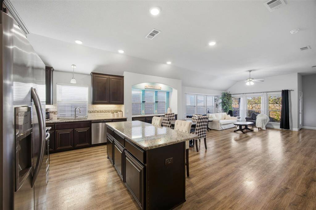 Welcome home to this beautifully maintained 2018-built residence in Alvarado offering 4 spacious bedrooms, 2 full baths, and a dedicated private study—perfect for today's work-from-home lifestyle. Designed with an open-concept layout, the bright living area flows seamlessly into a stylish kitchen featuring stainless steel appliances, granite countertops, and ample cabinetry, creating an ideal space for both everyday living and entertaining. The common areas showcase durable luxury vinyl plank flooring, while the oversized primary suite provides a true retreat with generous space to unwind and a well-appointed en-suite bath. Secondary bedrooms are nicely sized and offer flexible living options for guests, family, or hobbies. Step outside to a quaint backyard—perfect for relaxing or light outdoor gatherings. Located just minutes from town, this home offers quick access to schools, shopping, dining, and major highways, combining comfort, convenience, and value. This move-in ready home is a fantastic opportunity to enjoy modern finishes in a desirable Alvarado location!