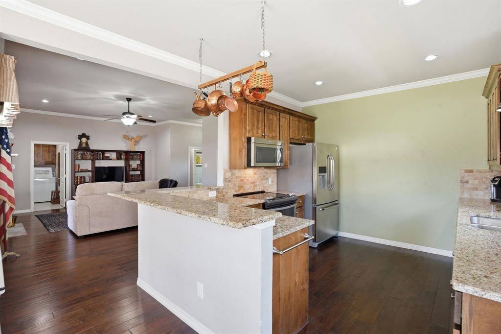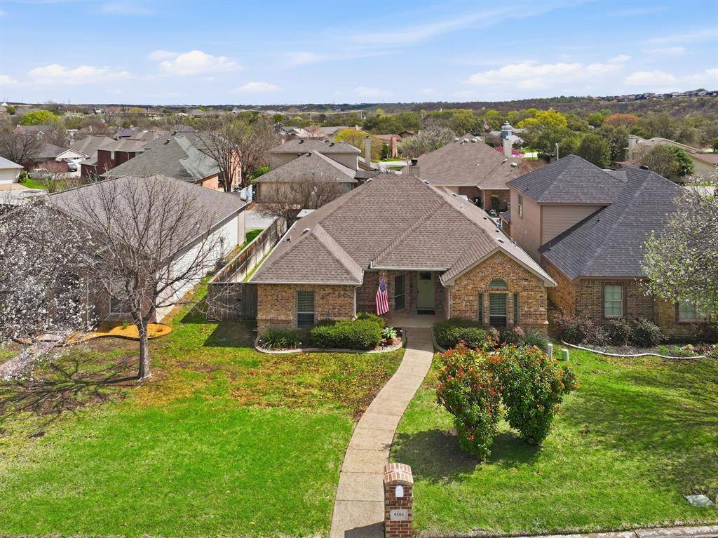 Welcome to The Landing! North Fort Worth's premier lake access community, where 9504 Landing Way delivers the lifestyle upgrades you actually want. This 3 bedroom 2 bath split floorplan shines with rich knotty alder cabinetry, granite countertops, natural stone backsplash, and gleaming wood floors with the open living space. Curl up by the wood-burning fireplace with its stone tile surround on cool Texas nights and then step outside to the extended patio and custom pergola when the weather calls. Rear-entry garage keeps the neighborhood curb appeal pristine. Fridge, washer & dryer included. Full sprinkler system. Move-in ready, so no excuses needed. The community delivers: pool, tennis courts, clubhouse, and exclusive resident access to an Eagle Mountain Lake boat ramp, dock with slip rental available. Walk to the water. Launch your boat or kayak. Host sunset cookouts. This is lake life without the lake house price tag. Minutes from Alliance, I-820, and everyday conveniences. Come see it before someone else does.