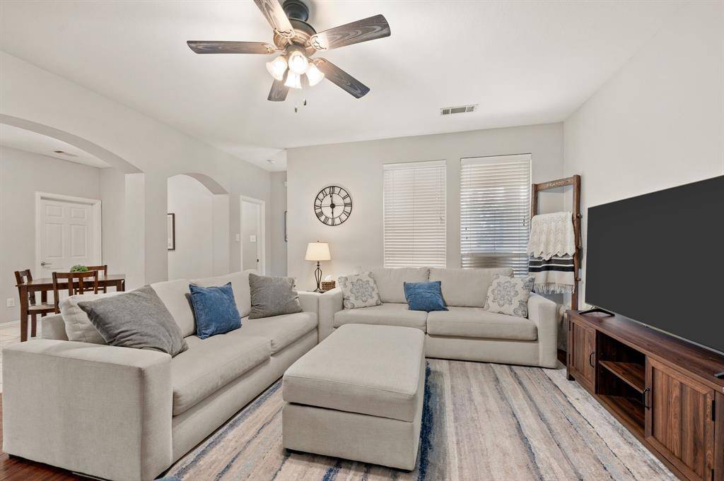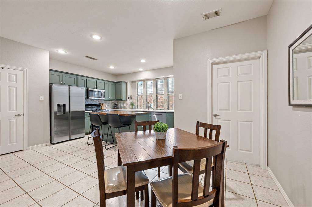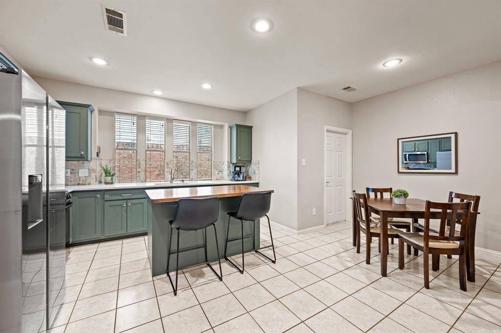 Welcome to this charming two-story home located in the highly sought-after Northwest ISD. With 3 bedrooms and 2.5 bathrooms, this home offers a functional layout featuring the primary suite conveniently located on the main floor, while the additional bedrooms and full bathroom are tucked away upstairs for added privacy. The heart of the home is the beautifully updated kitchen, remodeled in 2024 with a new lower cabinet configuration, refinished upper cabinet doors, stylish backsplash, new sink, dishwasher, and an expanded butcher block island with seating, perfect for casual dining or gathering with friends and family. The living spaces feel warm and inviting, making it easy to settle in and feel at home. Thoughtful updates throughout the home include a new central AC and attic insulation in 2022, fresh paint in the laundry room and upstairs bathroom, updated front porch lighting, and a freshly painted front door that enhances the home's curb appeal. The landscaping was also redesigned and refreshed in 2022, creating a welcoming outdoor space. Modern conveniences include a Tapo electronic front door lock, Ring doorbell camera, and Ring front yard camera for added comfort and peace of mind. Residents also enjoy access to fantastic HOA amenities, including six community pools, making it easy to cool off and enjoy the neighborhood lifestyle. With its great location, smart updates, and inviting layout, this home is ready for its next owner to move in and enjoy.