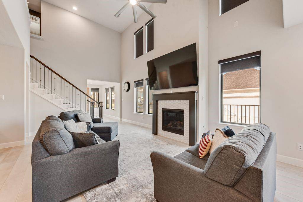 Beautiful end-unit townhome located in the highly sought-after master-planned community of Walsh, offering resort-style amenities and an unbeatable lifestyle. This charming home welcomes you with an inviting covered front porch and features 3 bedrooms, 2.5 bathrooms, and a light-filled open floorplan designed for comfortable living and entertaining. Step inside to find soaring ceilings in the living room, creating a bright and spacious atmosphere. The kitchen is the heart of the home, featuring a large island and a walk-in pantry, perfect for everyday living or hosting guests. The downstairs primary suite provides a peaceful retreat with dual vanities, a spacious glass-enclosed shower and a generous walk-in closet. Upstairs, you'll find two secondary bedrooms with walk-in closets along with a versatile game room, ideal for movie nights, a play area, or a home office. A covered patio offers the perfect place to relax outdoors. Residents of Walsh enjoy incredible community amenities including two resort-style pools, an Athletic Club, tennis and basketball courts, sand volleyball, fishing lagoon, community gardens, fire pits, playground and a Makerspace. Conveniently located within walking distance to Walsh Elementary School and neighborhood amenities, and just minutes from I-30, shopping, and dining.