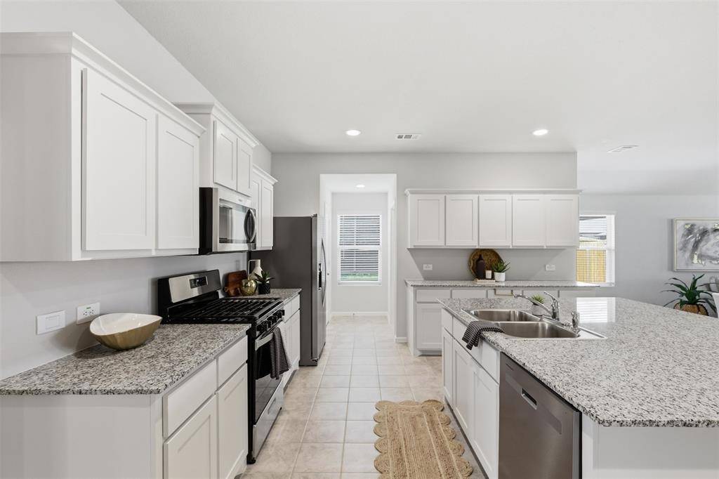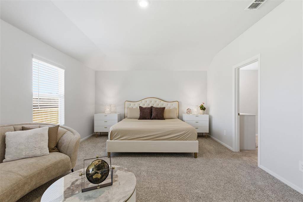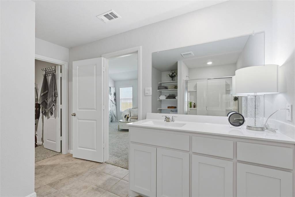 Luxurious private main Bedroom with wide Vanity, 5-foot oversized shower with glass door and big walk-in Closet. Tiled Entry, Hallways and Wet areas, plus Home has Connected Smart Home Technology Package. Covered front porch, covered back Patio and 6-foot privacy fenced Backyard. Gas Tankless Water Heater, Landscape Package, full sod, Sprinkler System and more! Near Fort Worth, Benbrook, and Granbury - Just off