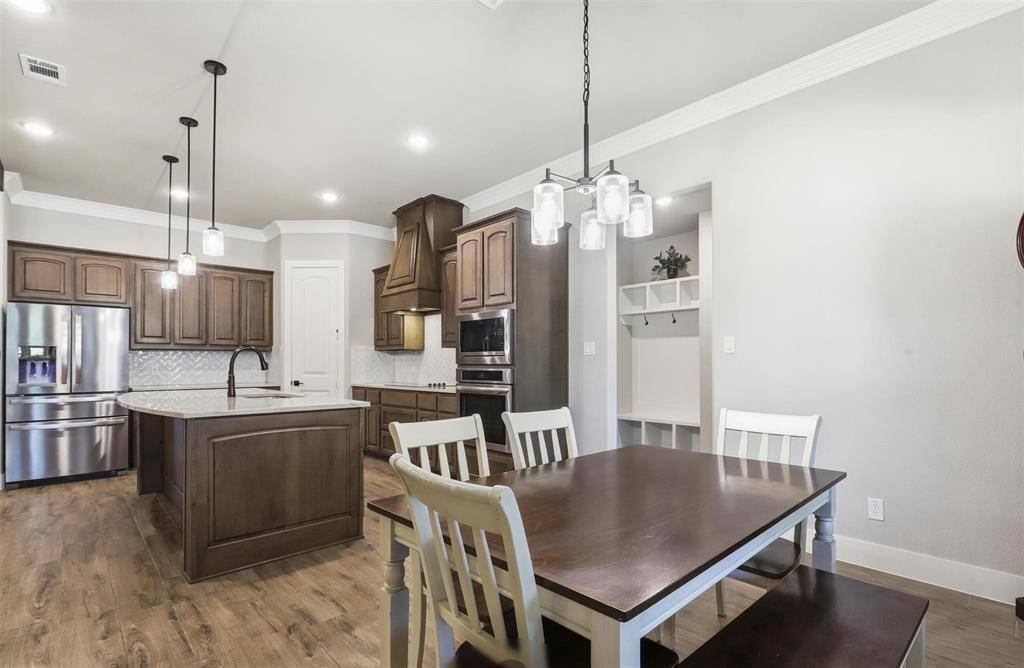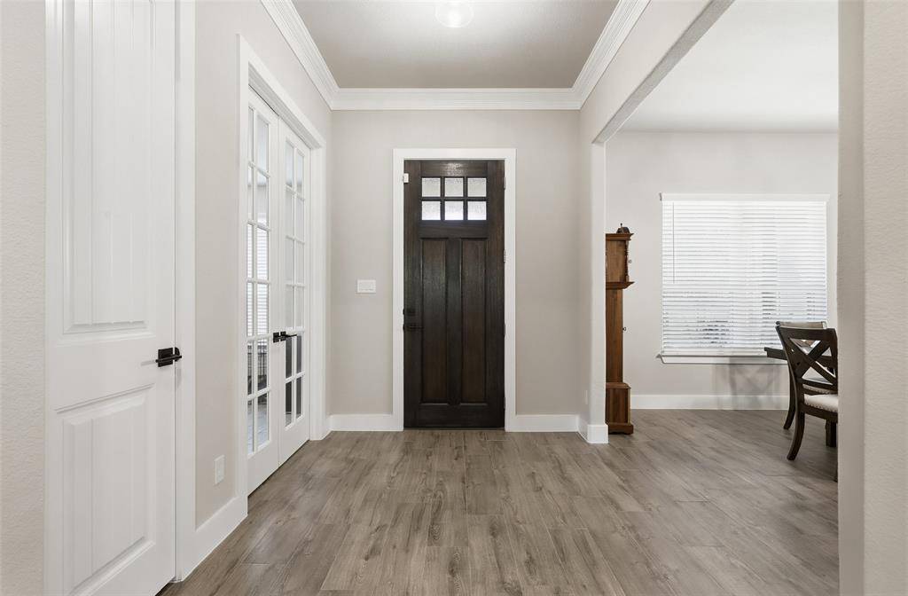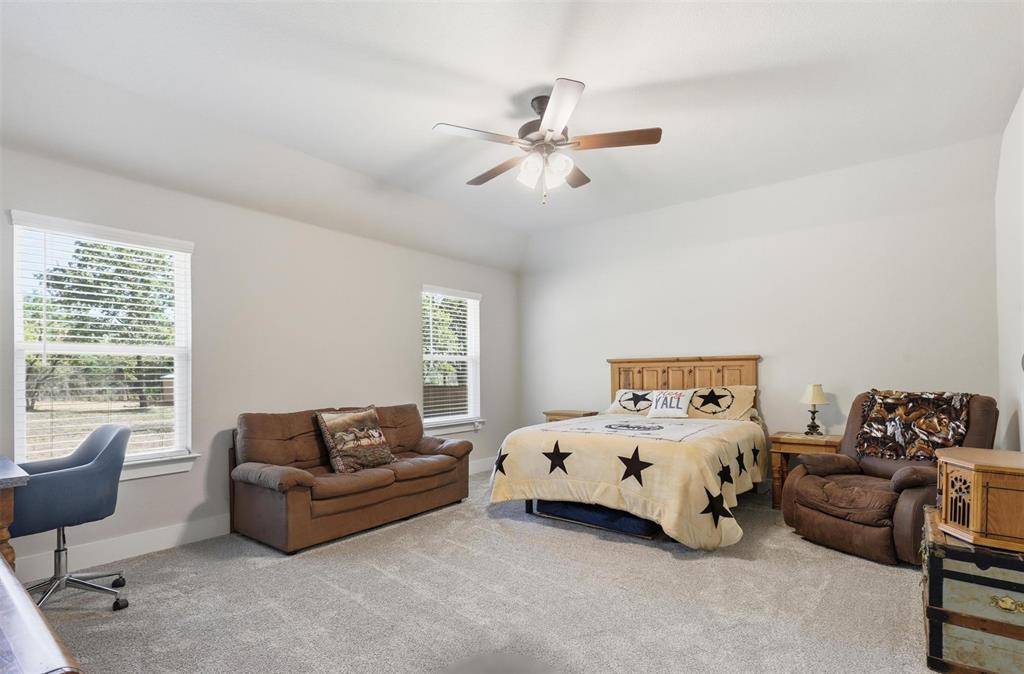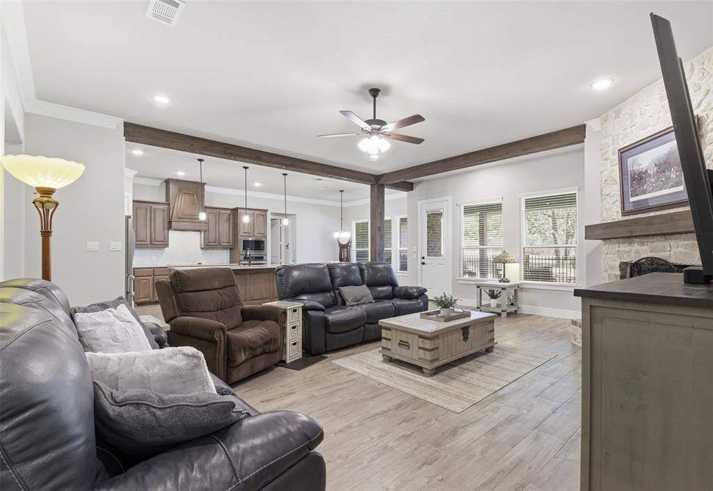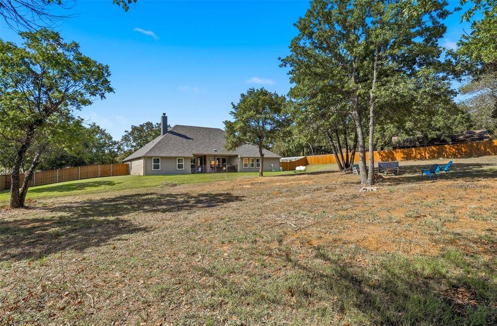 Beautifully situated along a serene country drive, this stunning property offers peaceful living with the convenience of daily amenities just minutes away and only 35 minutes from Fort Worth. Nestled on over an acre fully fenced, tree-filled lot, the home provides both privacy and picturesque surroundings.
