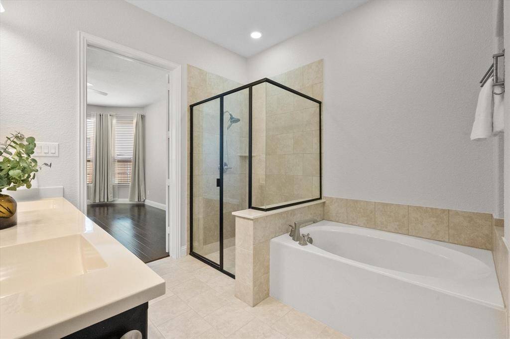 Welcome to this impeccably maintained custom home in the highly desirable Garden Heights community, where residents enjoy access to two community pools, walking trails, pond and cabana. Built in 2016, this spacious 3-bedroom, 2.5-bath home offers 2,868 square feet of thoughtfully designed living space with the primary suite conveniently located on the main floor. Rich wood flooring flows through the entry, office main living area and primary bedroom. Just off the entry, a versatile front OFFICE provides the perfect work-from-home space but could easily serve as a formal dining room, home school room, third living area or fourth bedroom. The chef's kitchen is designed for both everyday living and effortless entertaining, featuring granite countertops, a large island with seating, 5-burner gas cooktop, double ovens, decorative lighting and under-cabinet lighting for added style and functionality. The main living area is anchored by a stunning stone fireplace that adds character, warmth and a welcoming focal point. The private primary suite offers a relaxing retreat with dual sinks, a garden tub, separate walk-in shower and separate his-and-hers closets for exceptional storage and organization. Upstairs, enjoy brand new carpet throughout the additional living spaces including a dedicated MEDIA ROOM, an oversized FAMILY ROOM and two spacious secondary bedrooms. Step outside to a beautifully enhanced backyard designed for relaxation and entertaining, featuring a flagstone PATIO, PERGOLA, and a NEW HOT TUB —perfect for unwinding after a long day. With access to highly rated MISD schools and minutes from shopping, dining, parks and commuter routes this home has not only the best of Mansfield but all of DFW. Blending thoughtful upgrades, functional living spaces, and a wonderful community setting, this home is truly move-in ready and waiting for its next owner to enjoy. Agents, see transaction desk for detailed list of features and updates. Floor plan in photos.