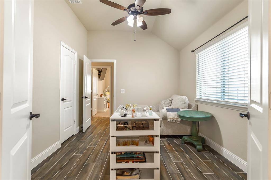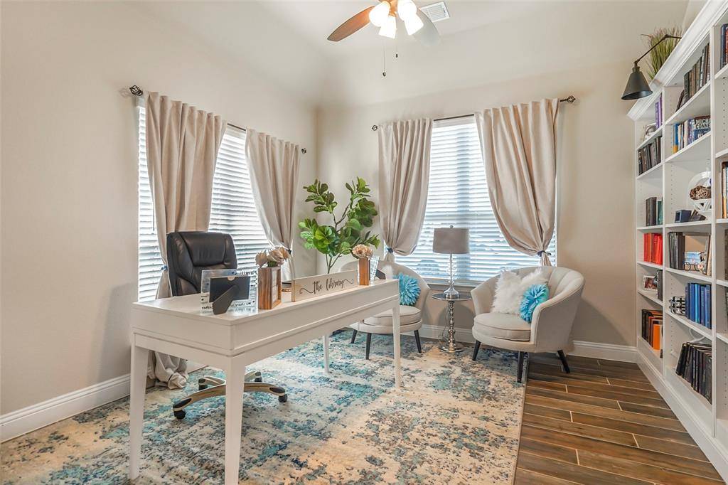 The thoughtful layout includes a VERSATILE FOURTH BEDROOM with dual access from the primary suite and main hallway. This flexible space can easily serve as a NURSERY, SECOND OFFICE, OVERSIZED CLOSET, or PRIVATE GUEST ROOM. The primary suite offers a relaxing escape, while the office features BUILT-IN SHELVING, creating the perfect PERSONAL LIBRARY OR STUDY.