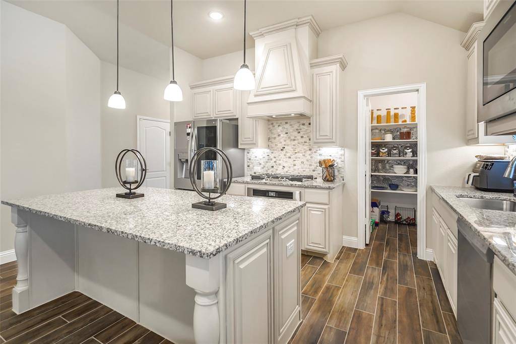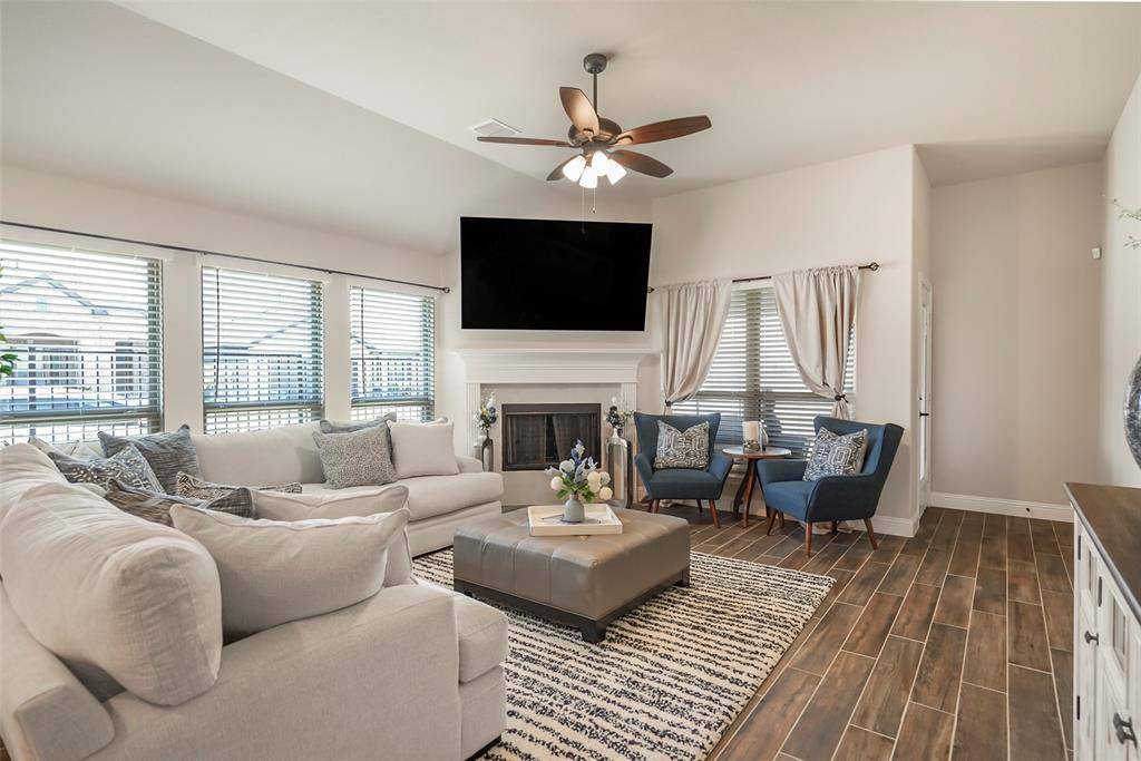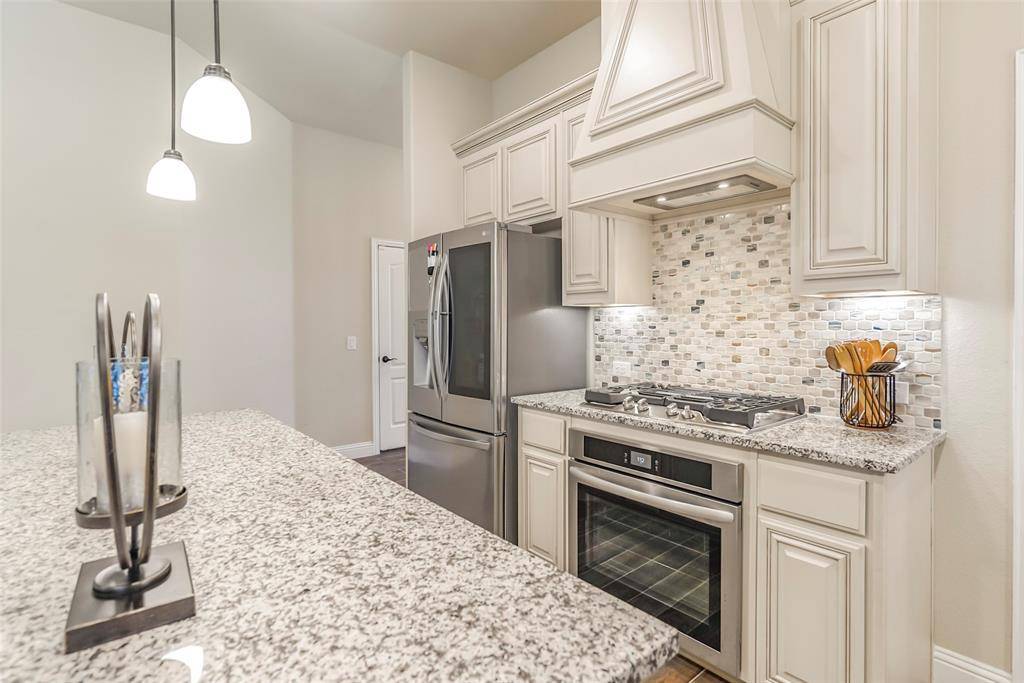 Designed with DURABILITY AND STYLE in mind, the home features WOOD-LOOK PLANK TILE FLOORING throughout the main living areas and PRIMARY SUITE. The kitchen is a true standout, showcasing GRANITE COUNTERTOPS, a STATEMENT BACKSPLASH, and a TOP-OF-THE-LINE GAS RANGE—ideal for both everyday living and entertaining. GAS HEATING and a cozy FIREPLACE add comfort and efficiency year-round.
