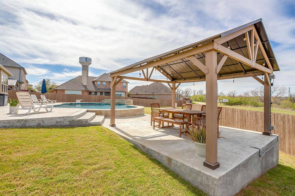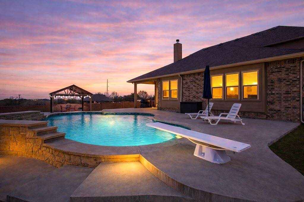 Discover the perfect blend of space, style, and comfort in this stunning 4-bedroom, 3.5-bath and 3 car garage executive home situated on a generous .3-acre corner lot in Sendero Oaks. No HOA! This impressive two-story residence offers a thoughtfully designed layout ideal for both everyday living and entertaining. As you enter the home, you will notice a bright foyer with a board and batten wall perfect for jackets and backpacks. The sitting room flows seamlessly into the formal dining room. This space could also flex as a homeschool room, home office, or music room. The primary living room is anchored by a beautiful fireplace and fantastic windows overlooking the swimming pool. The kitchen features granite countertops, tall ceilings, electric cooking, spacious pantry, and a large island. An additional dining space off of the kitchen includes updated lighting, great windows, and access to the fabulous backyard. The primary suite is located on the first floor. Perfectly designed, this room is generously sized and features 2 large closets, a walk in shower and soaking tub, double vanity and separate toilet room. The first floor also boasts a half bath, a mud bench and a separate utility room with full size hookups and storage space. Head upstairs and you will find an additional living room plus a bonus space for home office or home gym. The second floor features 3 large bedrooms and 2 full bathrooms, including one ensuite. Walk out attic space makes life a little easier. Outdoors, your private retreat awaits. Enjoy a beautifully designed saltwater pool, perfect for relaxing or hosting summer get-togethers. The pergola and extended patio provide shaded comfort and an ideal setting for year round enjoyment. Located within Crowley ISD, this home combines convenience, flexibility, and upscale living in one exceptional package.
