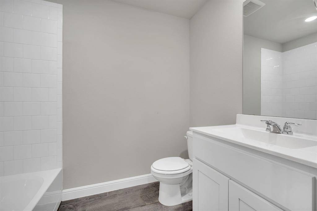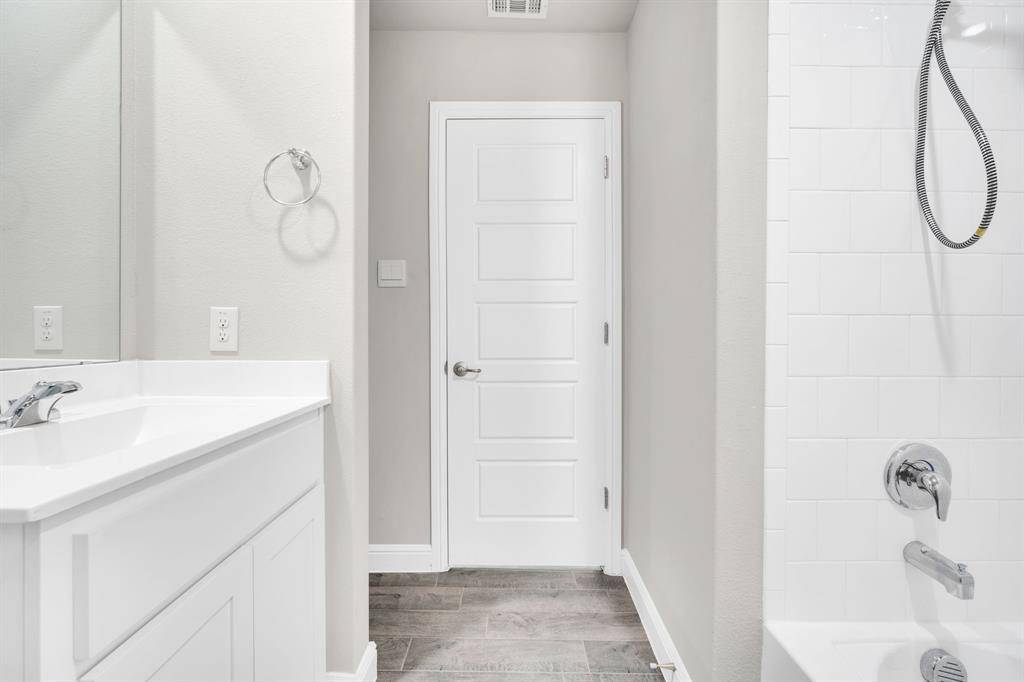 From the moment you arrive, the crisp white board-and-batten exterior, sleek garage door with glass like panels, and manicured landscaping create undeniable curb appeal — stunning at sunrise or at dusk. Step inside to an open-concept layout where wood-look ceramic tile flows throughout the main living areas, anchored by soaring ceilings and abundant natural light.