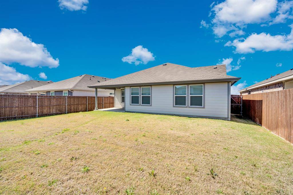 Step outside to a large covered patio with ceiling fan overlooking a generously sized, fully fenced backyard — ideal for weekend gatherings. Completing this home: 2-car garage, full laundry room, rain gutters, and Alvarado ISD schools.