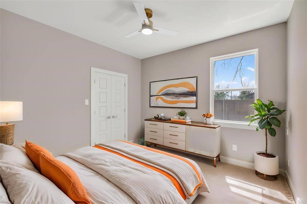 From the moment you walk in, the natural light, open layout, and clean modern finishes create a sense of ease. The main living space is where everything comes together. Mornings start with coffee at the oversized kitchen island, afternoons flow into productive work hours in your private office, and evenings are made for gathering with friends and family in a space that feels both polished and welcoming.