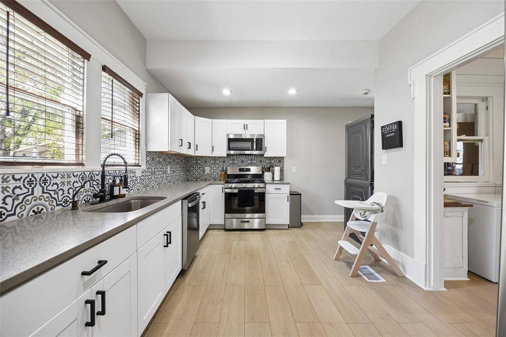 Historic charm meets modern comfort in this beautifully restored 1912 Craftsman in Cleburne. This stunning two-story home blends timeless character with thoughtful updates, creating a unique living experience. A welcoming wraparound porch offers an inviting space for outdoor enjoyment, whether relaxing or hosting gatherings. Inside, restored original hardwood floors extend throughout, showcasing the home's rich history while complementing modern enhancements. The living area features a classic fireplace and original built-ins, adding warmth and character. The redesigned kitchen combines style and function with quartz countertops, updated cabinetry, flooring, backsplash, lighting, and appliances, while maintaining the charm of the original butler's pantry. Bathrooms have been tastefully remodeled with vintage-inspired features, including a clawfoot tub and period-style details. Throughout the home, original elements such as glass door knobs, interior doors, and intricate woodwork have been carefully preserved. Extensive updates provide added peace of mind, including a new roof, updated plumbing and electrical systems with all-new upstairs electrical, new wall and attic insulation with improved ventilation, and a tankless water heater. Custom closets in every bedroom enhance functionality and storage. The property is set on a beautifully maintained lot with 7 pecan, 3 live oak, and 5 fruit trees and includes a large workshop, offering flexibility for a variety of uses. With its blend of historic character and modern updates, this home presents a special opportunity in an established Cleburne location.