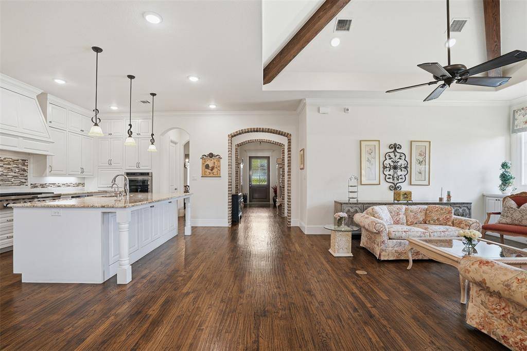 Designed with both everyday living and effortless entertaining in mind, the open-concept floor plan features a spacious living room anchored by custom built-ins, seamlessly flowing into a well-appointed kitchen complete with custom cabinetry, a butler's pantry, and abundant storage enhanced by pull-out drawers. A dedicated office provides the perfect work-from-home retreat, while the split-bedroom layout ensures privacy and tranquility. The primary suite is thoughtfully connected to the laundry room with convenient pass-through cabinets, adding both functionality and ease to daily living.