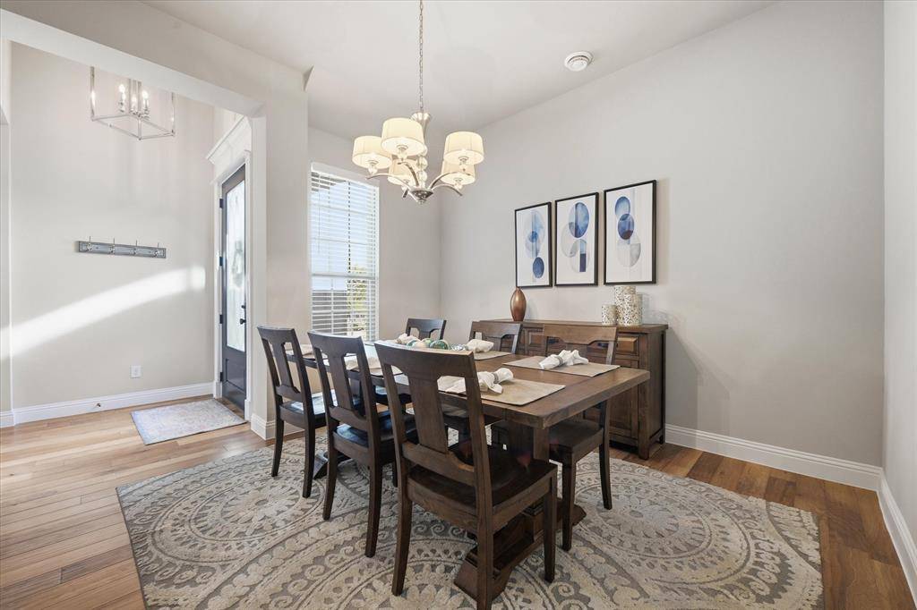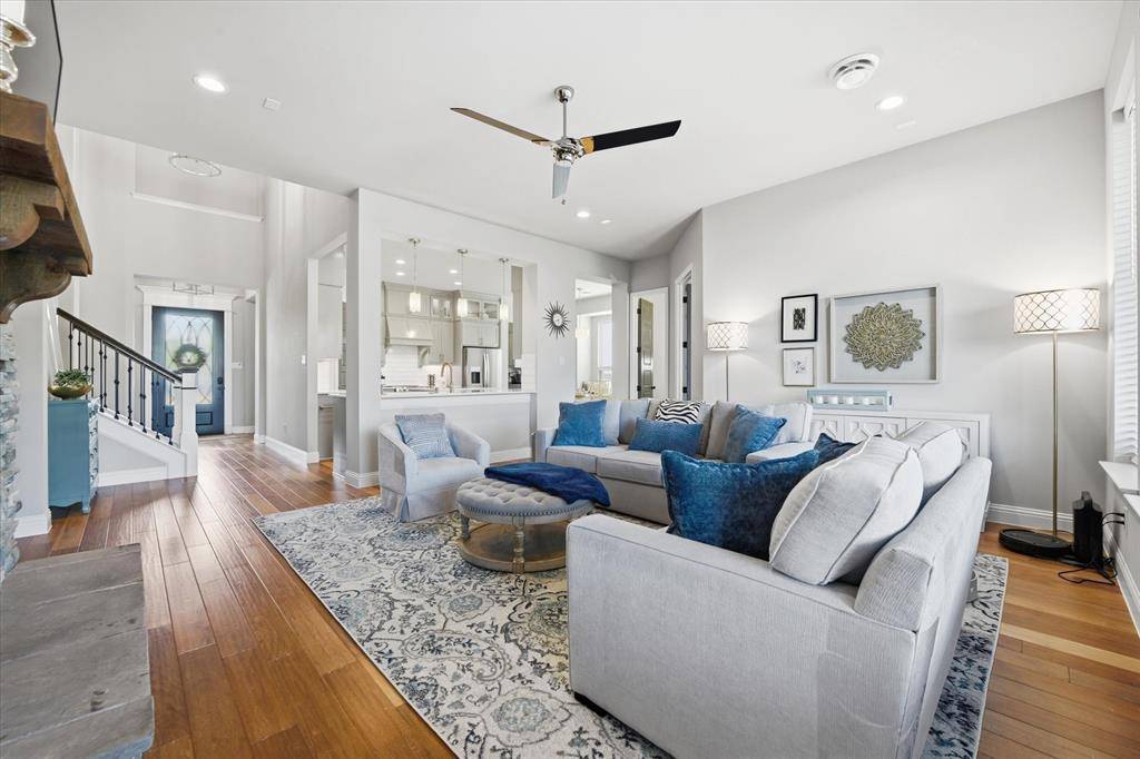 Step inside to an open-concept layout filled with natural light from expansive windows. The inviting living area features a cozy wood-burning fireplace and flows seamlessly into the kitchen, making it ideal for both everyday living and entertaining. The kitchen is a true standout with quartz countertops, abundant cabinetry, an eat-in area with built-in bench seating, stylish finishes, and a Butler's pantry for added storage and prep space. The formal dining area is perfectly positioned for hosting gatherings, while the bright office offers a quiet and functional work-from-home space.