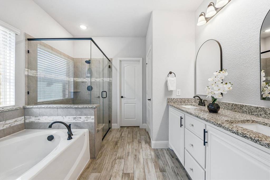 The serene primary suite is filled with natural light and features a charming window seat. The spa-like primary bath offers a garden tub, separate shower, dual vanities, and a large walk-in closet. Upstairs, enjoy a versatile game room along with a dedicated media room or office with custom built-ins. Three well-sized secondary bedrooms share a bathroom with dual sinks, providing comfort and convenience for family or guests.