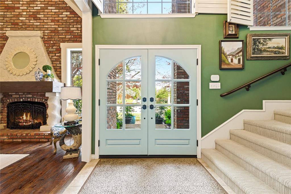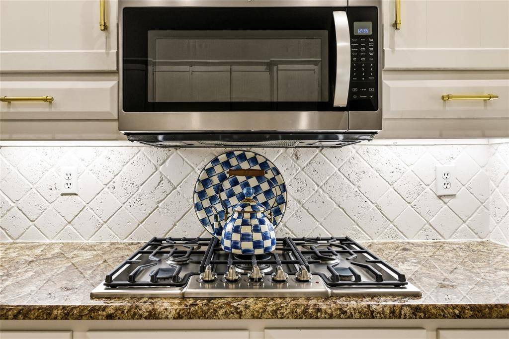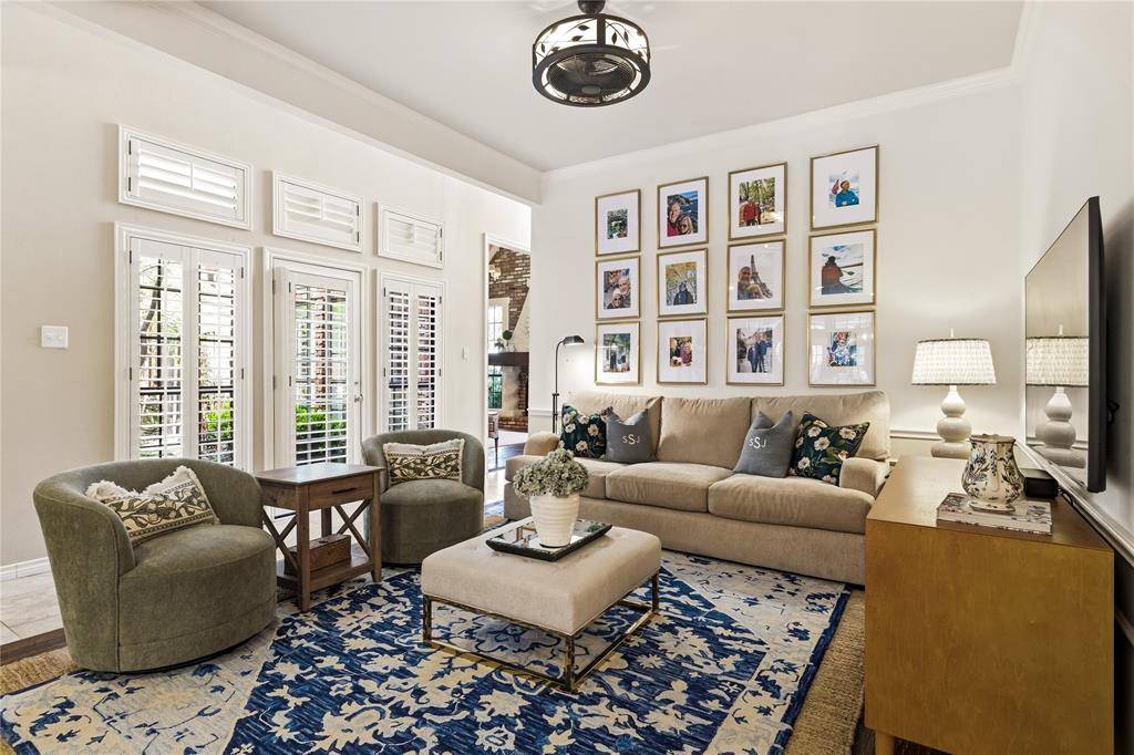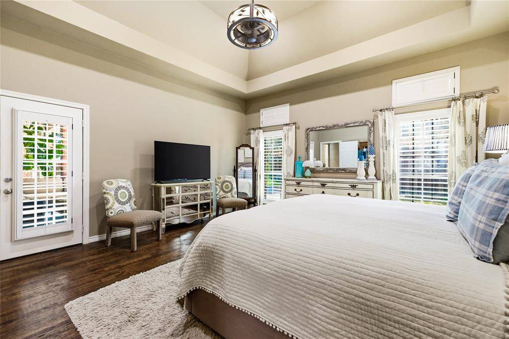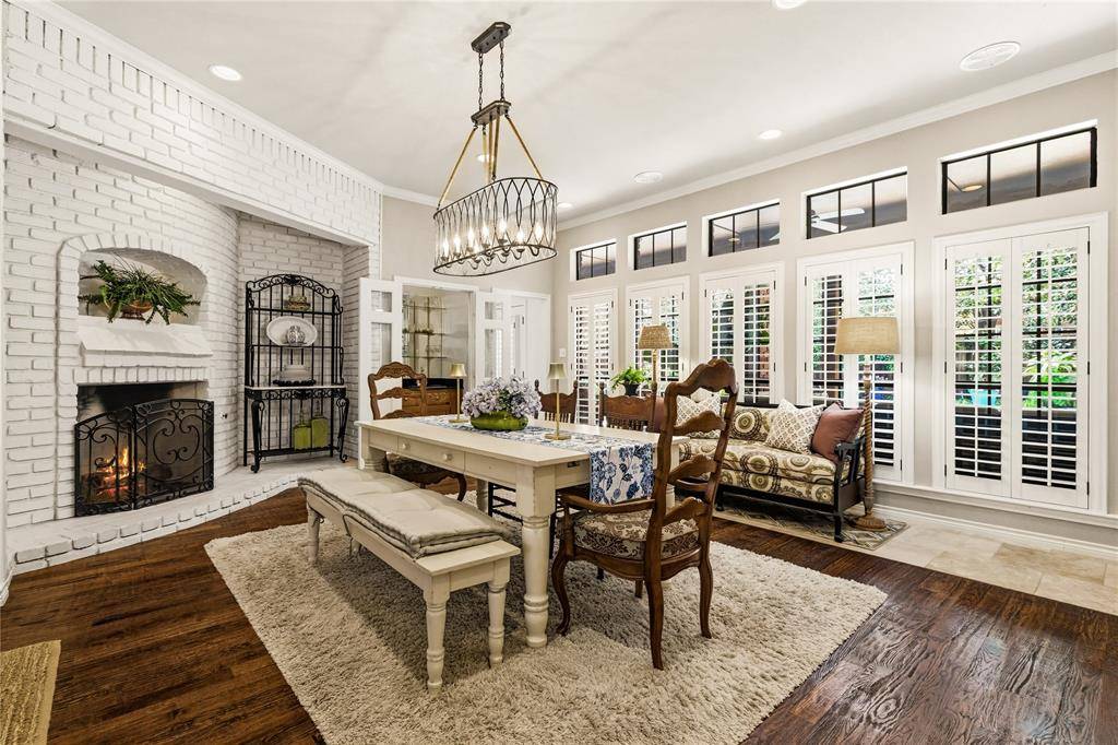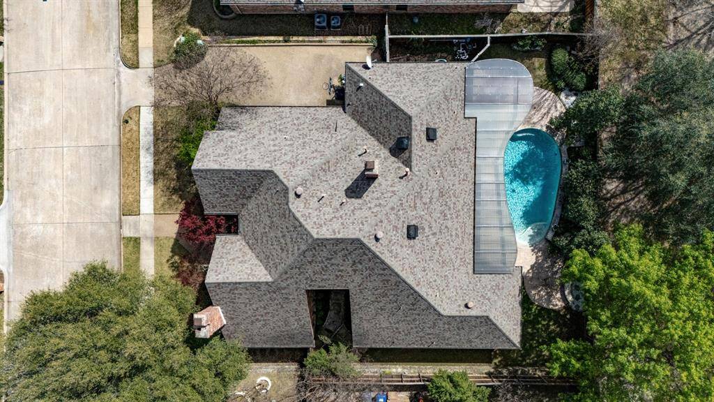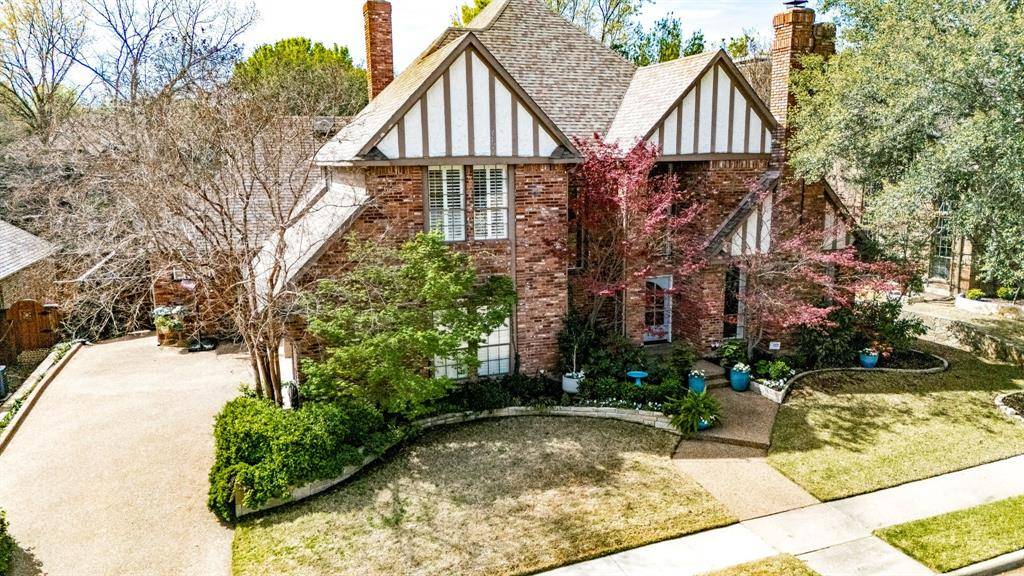Offer deadline set for Friday April 10th at noon. From the moment you arrive at 1207 Shady Oaks, the steeply pitched gables, rich red brick, and classic half-timbered elevation signal something special and the interior delivers in every way. Tucked in the sought-after Stonebridge Ranch community, this English Tudor-inspired home offers a curated, personality-rich interior with privacy that is genuinely rare. The soaring entry foyer features bold William Morris-inspired wallpaper, a sweeping staircase, and a gallery wall that sets the tone for the thoughtfully designed interiors throughout. Handscraped hardwood floors, travertine tile, plantation shutters, and two fireplaces, one with dramatic exposed brick soaring to a vaulted ceiling in the living room, and a second white-painted brick fireplace in the formal dining, create warmth and character at every turn.The kitchen features white cabinetry with brass hardware, granite countertops, and opens to the breakfast area flooded with natural light. A wet bar with glass shelving adds an entertaining-ready touch just off the dining. The primary suite is a showpiece featuring dual dark green vanities with brass fixtures flanking a freestanding tub, all anchored by a dramatic vaulted ceiling with beam and botanical wallpaper. The primary suite is located downstairs alongside a second bedroom with split arrangement for privacy. Upstairs, two additional beds, full bath, and bonus flex space offer room for guests, home office, or playroom. The backyard backs to green space and is an entertainer's dream and nature lover's retreat. The cedar pergola extends the living space outdoors with covered dining and lounge areas, while the pool and lush landscaping create privacy and tranquility. A gated side courtyard with stepping stones adds another quiet outdoor moment. A three-car garage completes the package. This is a home with soul, one that has been loved, styled, and lived in beautifully, and it is ready for its next chapter.